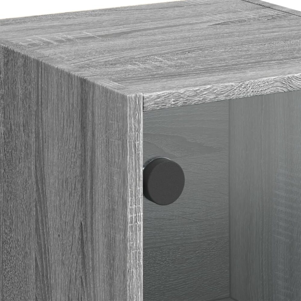 Aparador alto c/ portas de vidro 35x37x109 cm cinzento sonoma - PORTES GRÁTIS