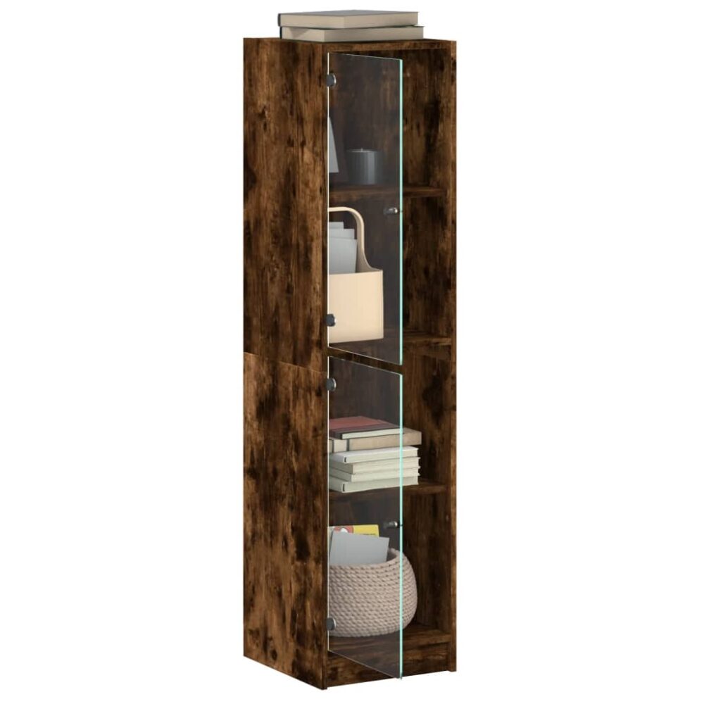 Aparador alto c/ portas de vidro 35x37x142 cm carvalho fumado - PORTES GRÁTIS