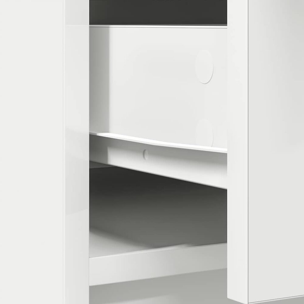 O aparador oferece soluções de armazenamento versáteis, mantendo o seu espaço arrumado e organizado, ao mesmo tempo que acrescenta praticidade e estética ao seu espaço de estar. Material estável e durável: os derivados de madeira são um material durável e estável com uma superfície lisa que é resistente à humidade, deformação e rachadelas, tornando-se uma escolha fiável para uma variedade de projetos.Amplo espaço de armazenamento: O armário buffet possui portas e gavetas, garantindo que seus itens estejam bem organizados e arrumados. As portas dos armários oferecem armazenamento fechado para proteger seus pertences e mantê-los longe da vista, enquanto as gavetas fornecem espaço adicional para fácil acesso a vários itens.Superfície superior resistente: O tampo de mesa robusto fornece uma superfície confiável para manter seus itens essenciais ao fácil alcance, tornando-o ideal para o uso diário. Quer esteja a exibir molduras, itens decorativos ou a servir pratos, a sua durabilidade garante que pode lidar com várias tarefas com facilidade.Uso versátil: O armário de corredor com design elegante é perfeito para qualquer quarto, servindo como uma solução de armazenamento elegante na sala de estar, uma adição funcional à área de jantar ou um organizador prático para a entrada. O seu design adaptável complementa vários estilos, tornando-o numa excelente escolha para valorizar e arrumar o seu espaço.Fácil de cuidar: graças à sua superfície suave, o aparador é fácil de limpar com um pano húmido e requer menos manutenção. Atenção:Para evitar que tombe, este produto deve ser utilizado com o dispositivo de fixação na parede fornecido.