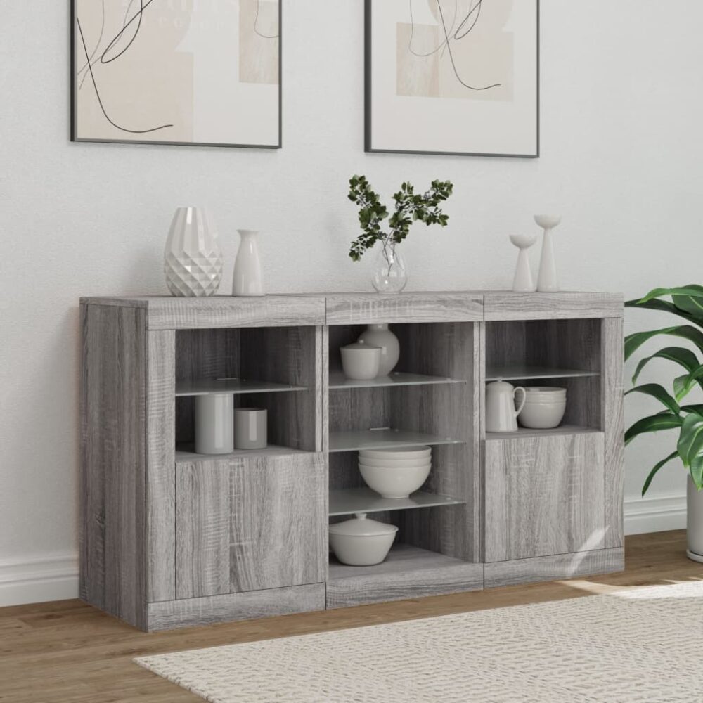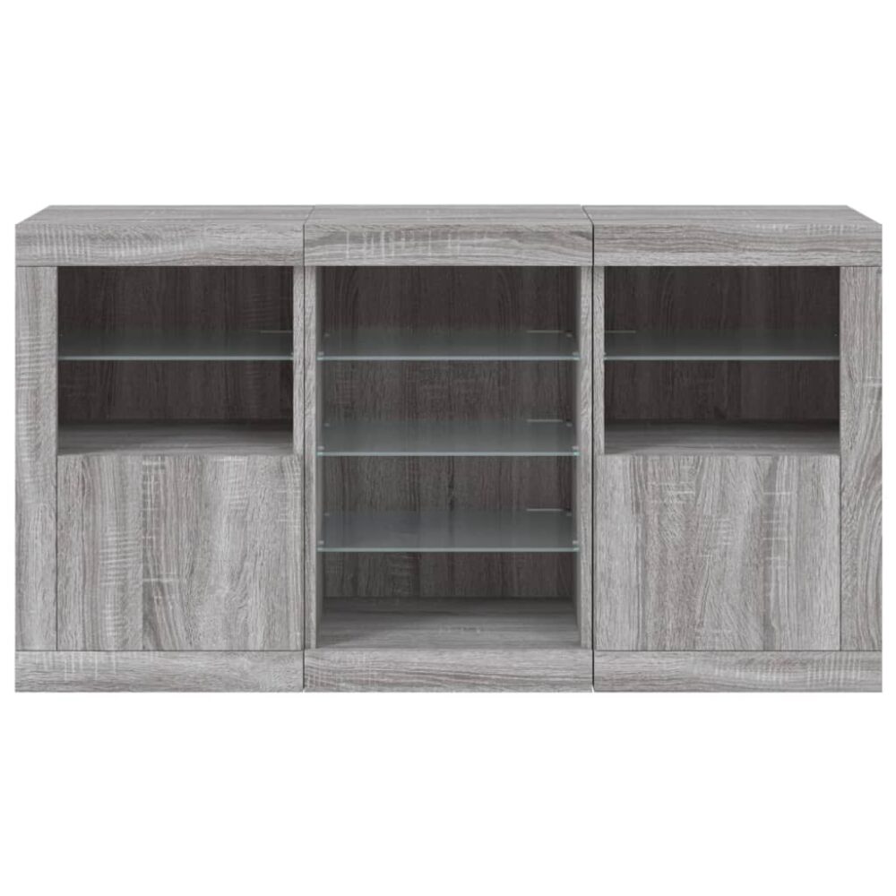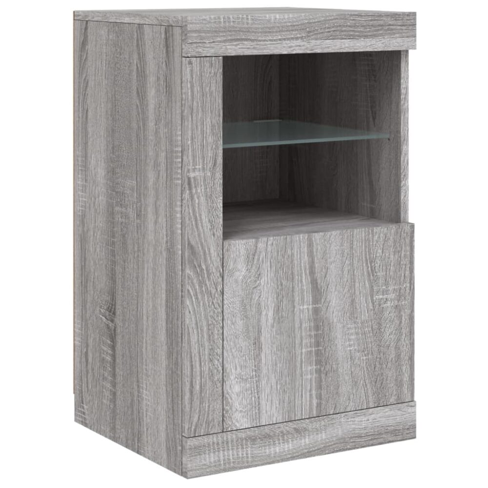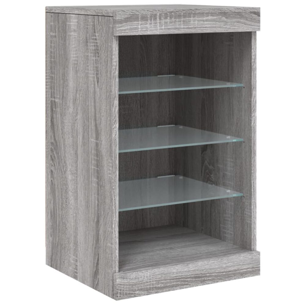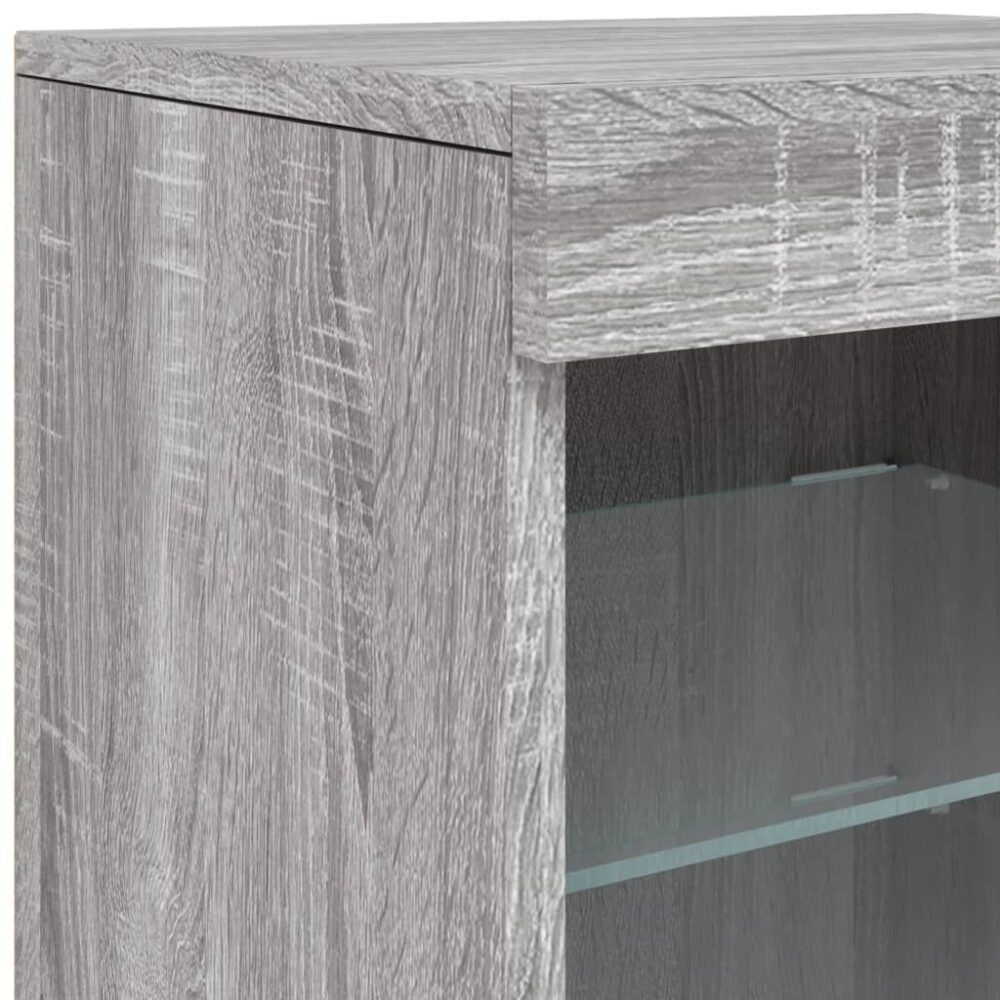 Aparador com luzes LED 123x37x67 cm cinzento sonoma - PORTES GRÁTIS