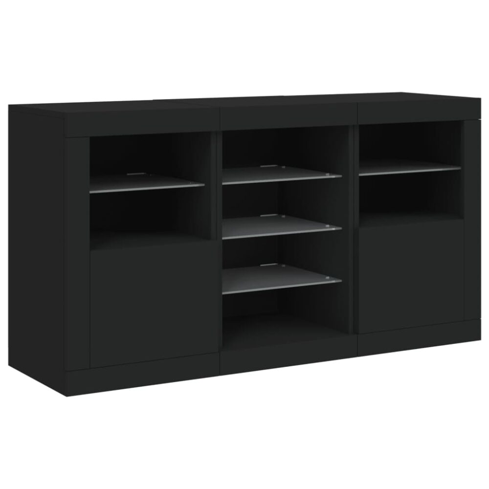 Aparador com luzes LED 123x37x67 cm preto - PORTES GRÁTIS