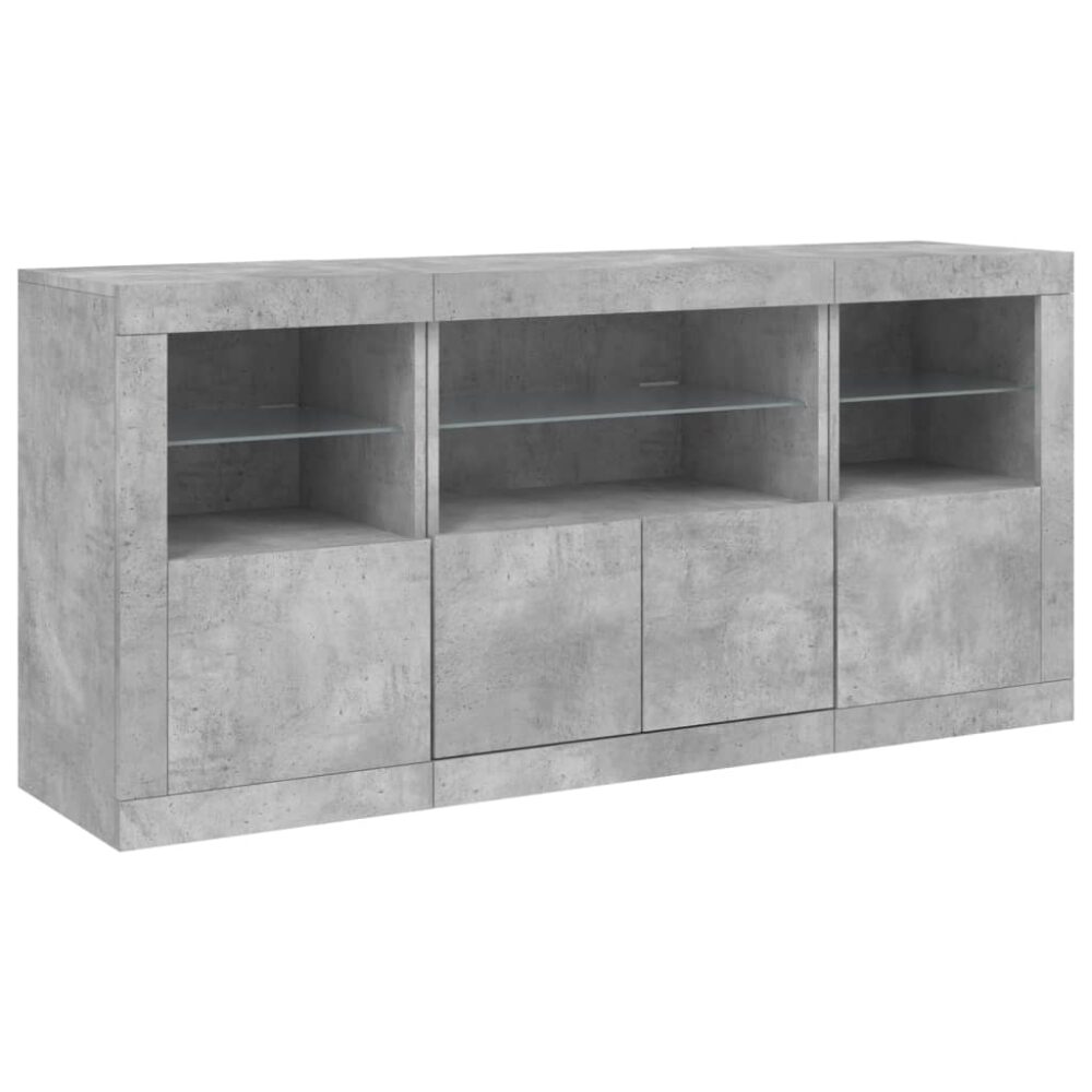 Aparador com luzes LED 142,5x37x67 cm cinzento cimento - PORTES GRÁTIS