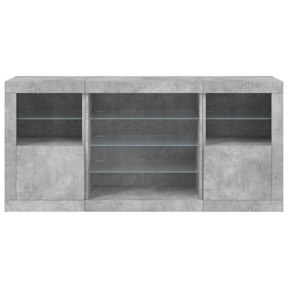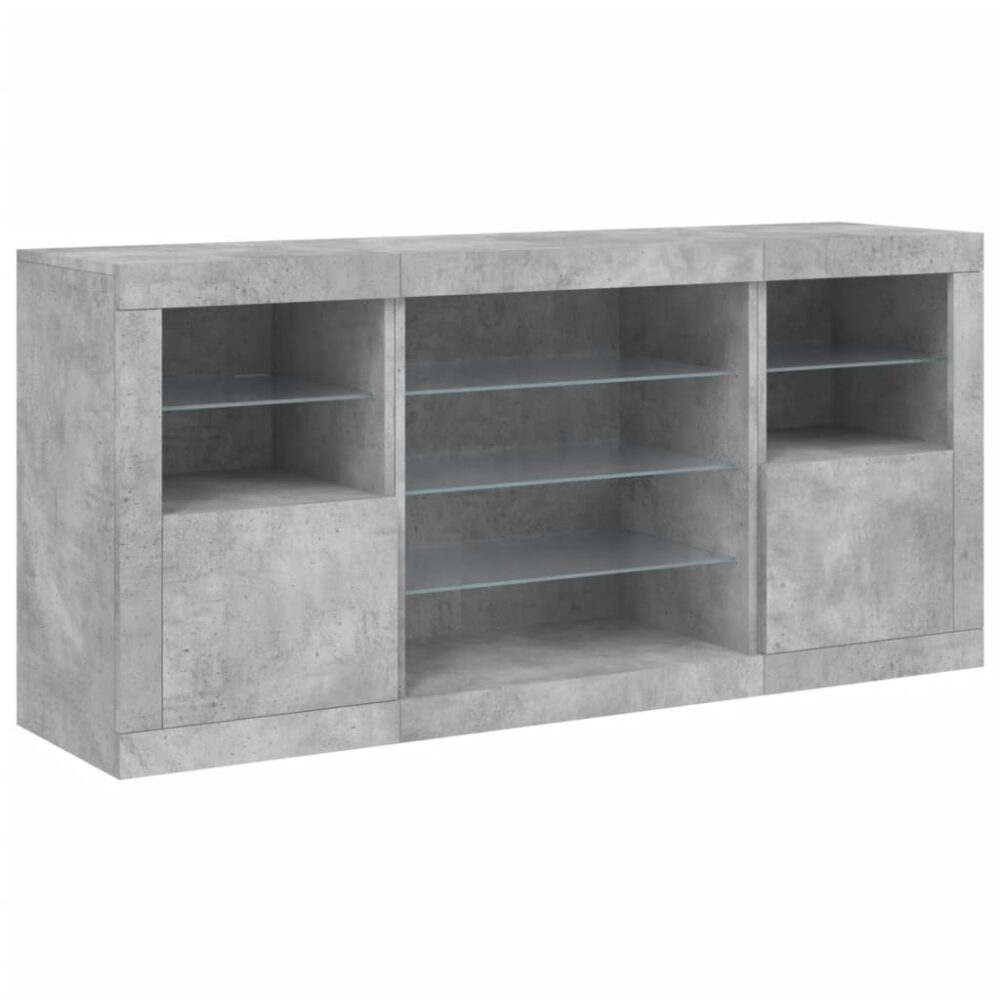 Aparador com luzes LED 142,5x37x67 cm cinzento cimento - PORTES GRÁTIS