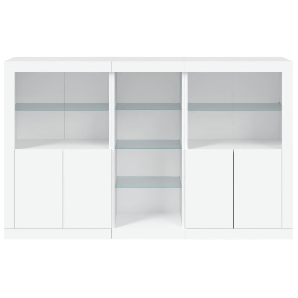 Decore a sua divisão com este aparador moderno com luzes LED que combina facilmente com mobília de qualquer estilo na sua casa. Material durável: os derivados de madeira possuem uma qualidade excecional e oferecem uma superfície suave bem como força, estabilidade e resistência à humidade.Luzes LED RGB: o armário buffet está equipado com luzes LED RGB vibrantes. Com vários menus personalizáveis, pode facilmente mudar a cor das luzes e até configurá-las para que se ajustem automaticamente. Estas luzes LED não só melhoram o aspeto contemporâneo do armário como também contribuem para o seu ar moderno.Amplo espaço de arrumação: o armário de armazenamento oferece muito espaço para manter os seus artigos do dia a dia devidamente organizados e facilmente acessíveis.Função de…