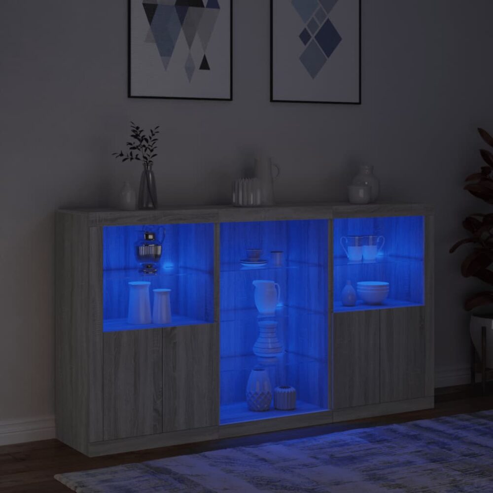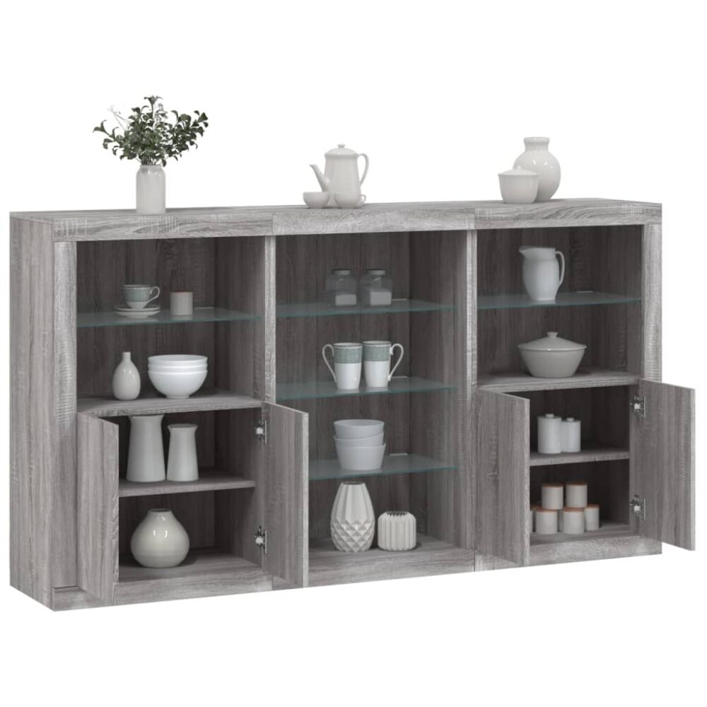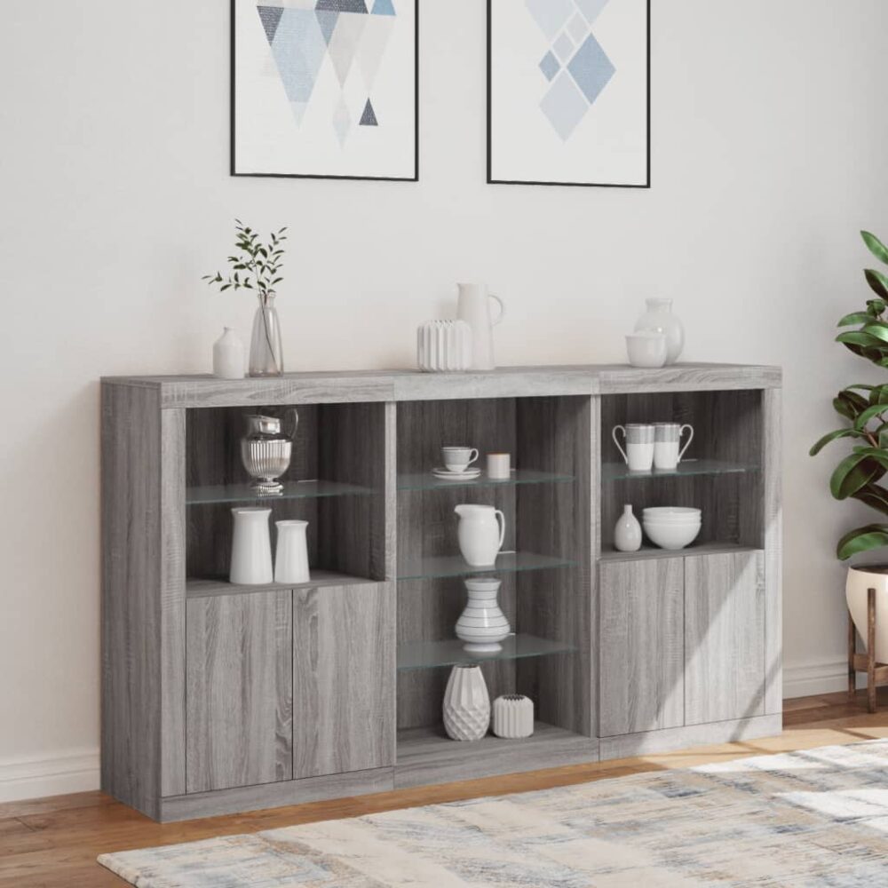 Aparador com luzes LED 181,5x37x100 cm cinzento sonoma - PORTES GRÁTIS