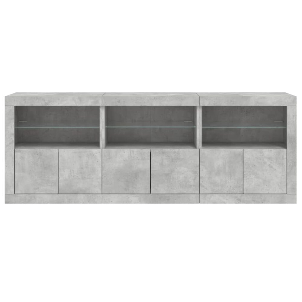 Aparador com luzes LED 181,5x37x67 cm cinzento cimento - PORTES GRÁTIS