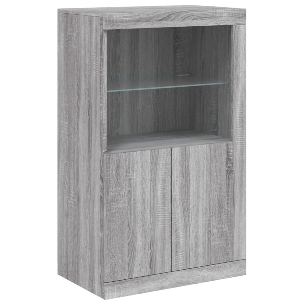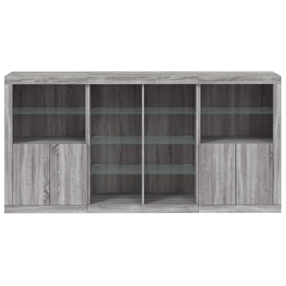 Aparador com luzes LED 202x37x100 cm cinzento sonoma - PORTES GRÁTIS