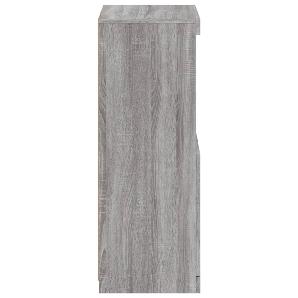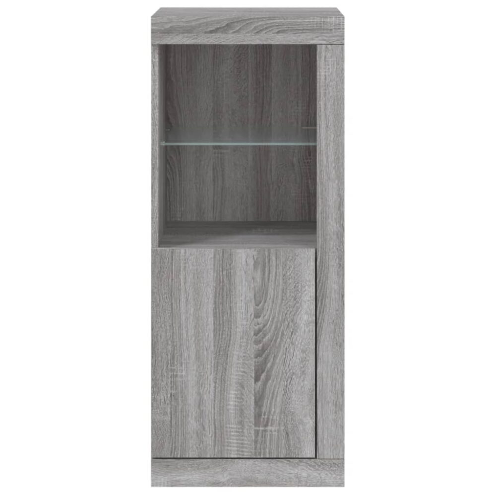 Decore a sua divisão com este aparador moderno com luzes LED que combina facilmente com mobília de qualquer estilo na sua casa. Material durável: os derivados de madeira possuem uma qualidade excecional e oferecem uma superfície suave, bem como força, estabilidade e resistência à humidade.Amplo espaço de arrumação: o armário buffet proporciona bastante espaço de arrumação para manter as suas revistas, livros, controlos remotos e outros artigos pequenos bem organizados e ao alcance.Função de exposição: o tampo robusto do aparador é ideal para expor objetos decorativos, molduras ou vasos com plantas.Luzes LED RGB: o armário de arrumação está equipado com luzes LED RGB vibrantes. Com vários menus personalizáveis, pode facilmente mudar a cor das luzes e até configurá-las para que se ajustem automaticamente. Atenção:Para evitar que o produto se vire, deve utilizar o dispositivo de fixação na parede fornecido. Útil saber:O produto inclui um conetor USB que requer uma fonte de alimentação USB de 5V certificada (não incluída). Não utilizar este produto se algum componente estiver partido, rasgado ou em falta. Este produto é alimentado por CC 5V, mas a fonte de alimentação USB de 5V certificada não está incluída. Uma tensão mais elevada pode provocar um sobreaquecimento e resultar em danos no dispositivo e no risco potencial de sobreaquecimento e incêndio.