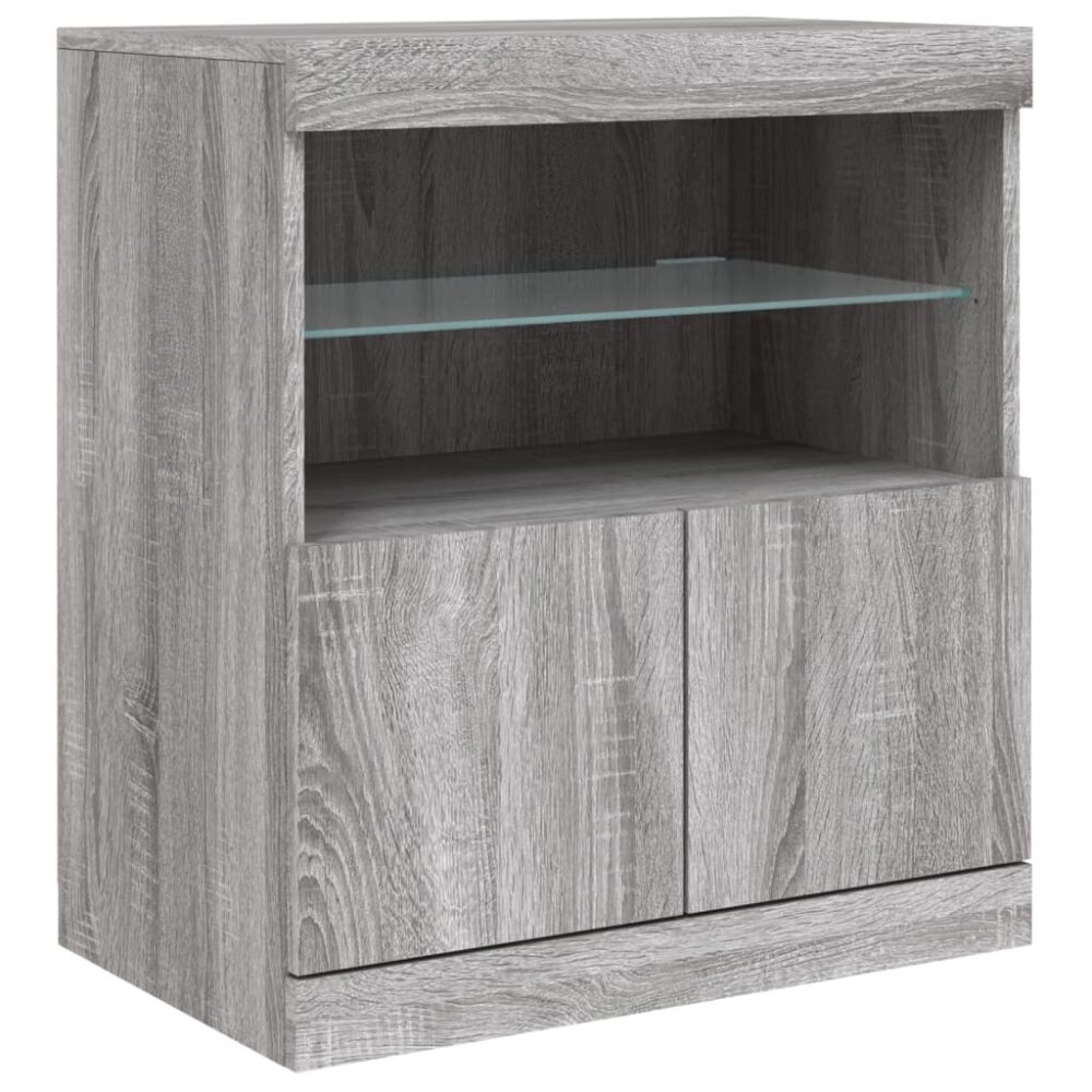 Aparador com luzes LED 60x37x67 cm cinzento sonoma - PORTES GRÁTIS