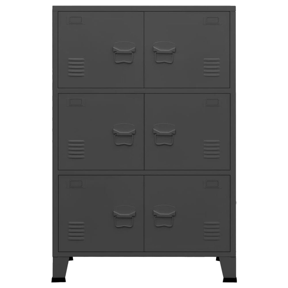 O aparador de arrumação industrial manterá a sua casa limpa e bem organizada! Este aparador é feito de metal, tornando-o robusto e estável. O aparador possui 6 portas, proporcionando um amplo espaço de arrumação para manter os seus artigos organizados e ao alcance. Cada porta está equipada com uma ranhura para colocar uma etiqueta com o nome e respiradouros, o que lhe permite organizar devidamente os seus artigos em diferentes categorias, destacando o seu aspeto industrial. É ainda fácil de limpar com um pano húmido.