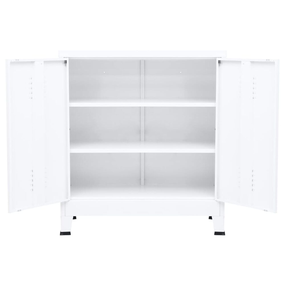 O aparador de arrumação industrial manterá a sua casa limpa e bem organizada! Com 2 prateleiras e etiquetas para colocar o nome nas portas, este armário de arrumação permite-lhe classificar os seus ficheiros em diferentes categorias. Adapta-se a qualquer decoração de escritório, graças ao seu design icónico e charme industrial. Os pés de aço com coberturas de plástico evitam que o seu chão seja arranhado. O aparador é feito de aço, tornando-o durável e fácil de limpar. Cada porta está equipada com uma ranhura para colocar uma etiqueta com o nome e respiradouros, o que lhe permite organizar devidamente os seus artigos, destacando ao mesmo tempo o seu aspeto industrial.