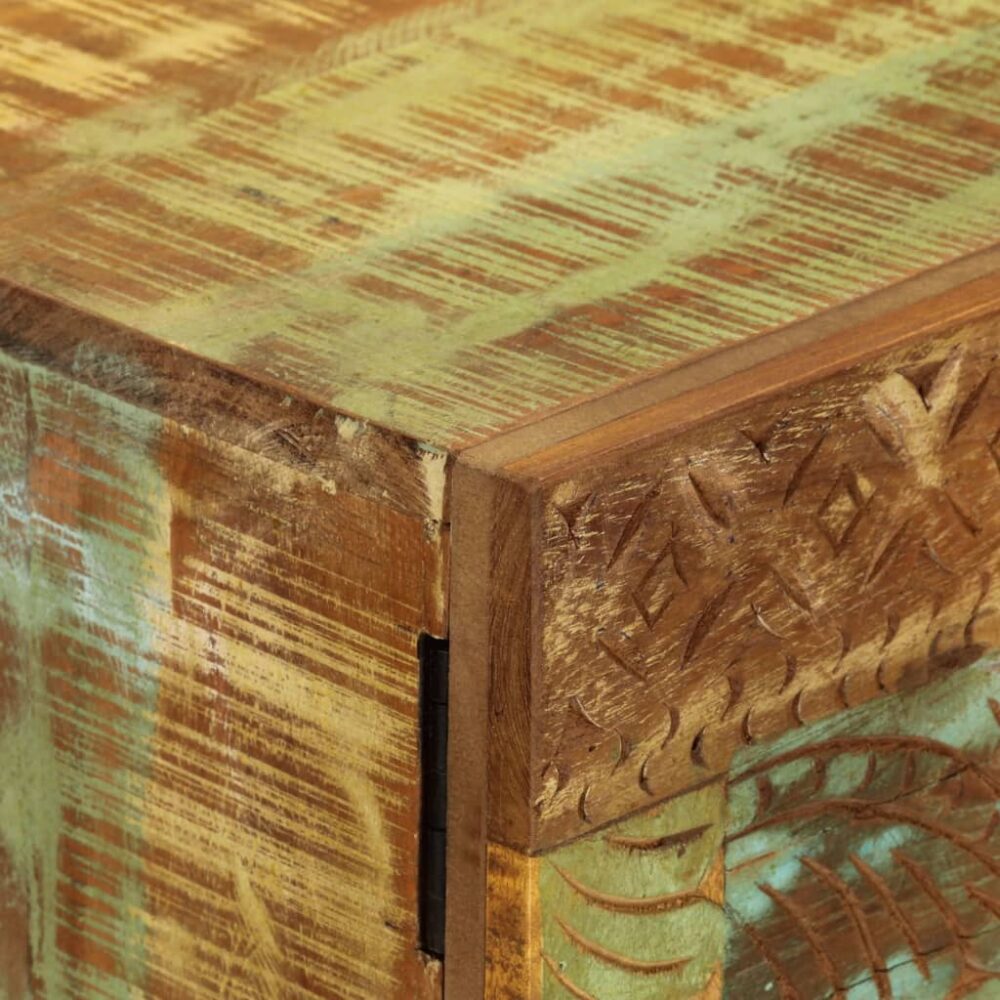 Aparador esculpido à mão 55x30x75 cm madeira recuperada maciça - PORTES GRÁTIS