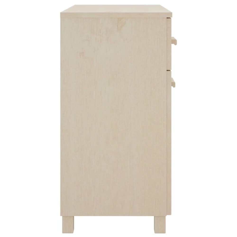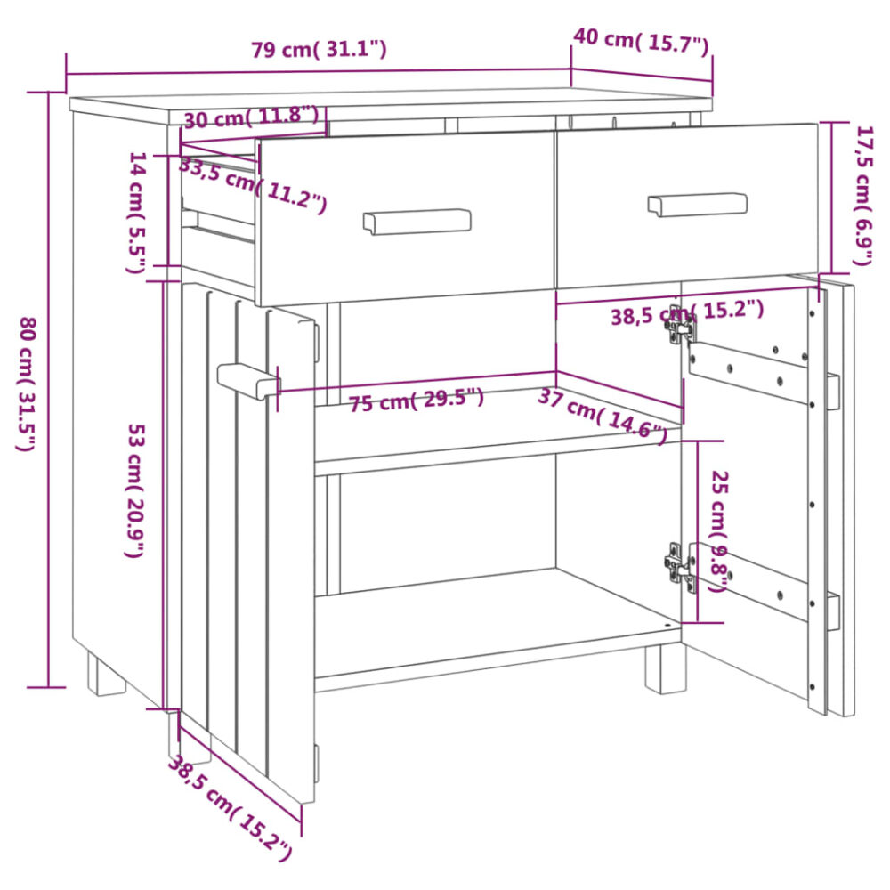 Este aparador de madeira é um complemento decorativo e prático para a sua decoração. Este móvel com gavetas é feito em madeira de pinho maciça, tornando-o estável e resistente. O móvel alto possui 2 portas e 2 gavetas que deslizam suavemente, proporcionando um amplo espaço de arrumação para poder manter os seus vários artigos essenciais diários bem organizados e fáceis de alcançar. O tampo resistente é ainda perfeito para expor objetos decorativos, molduras e vasos com plantas.