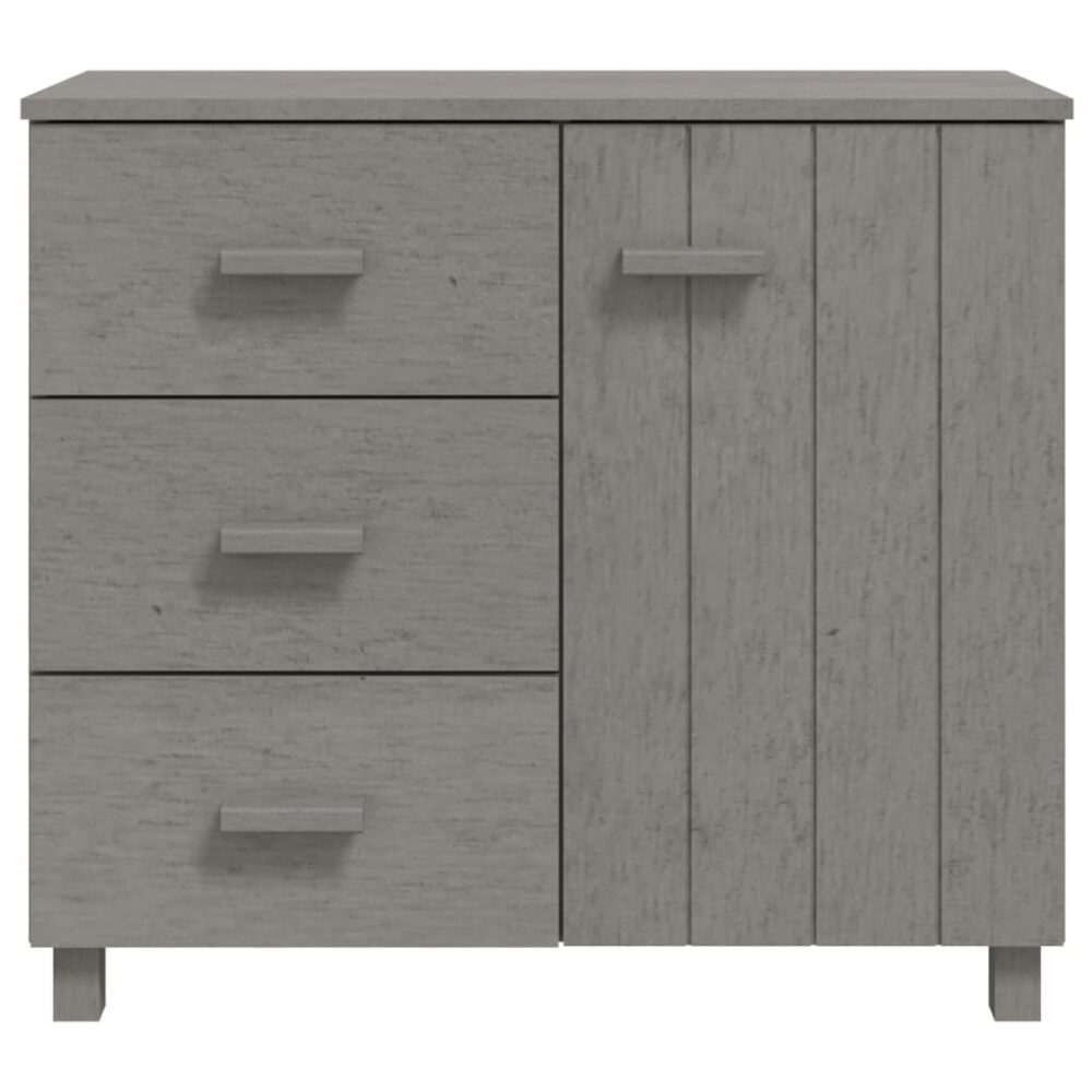 Este aparador de madeira é um complemento decorativo e prático para a sua decoração. O armário de gavetas é feito em madeira de pinho maciça, tornando-o estável e robusto. O aparador também possui 1 porta e 3 gavetas que deslizam suavemente, proporcionando um amplo espaço de arrumação para manter os seus vários artigos essenciais diários bem organizados e fáceis de alcançar. O tampo resistente é perfeito para expor objetos decorativos, molduras e vasos com plantas.