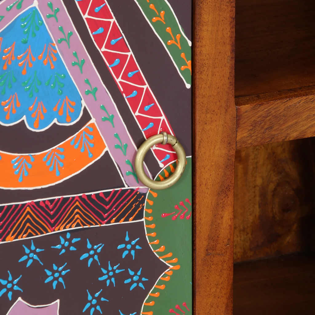 Este aparador oferece tanto decoração como arrumação prática, sendo um complemento perfeito para a sua casa. Material robusto e estável: a madeira de acácia maciça é conhecida pela sua resistência e durabilidade. As suas cores diversas e os padrões do grão únicos conferem-lhe uma aparência atraente. Com boa estabilidade e resistência às intempéries, é ideal para a confeção de mobiliário de interior e exterior.Amplo espaço de arrumação: o armário oferece um amplo espaço de arrumação para artigos de jantar essenciais e outros artigos domésticos, mantendo-os organizados e ao alcance.Beleza vibrante: O sidebaord apresenta um design pintado à mão com uma mistura de cores vibrantes, tornando-o um destaque atraente para qualquer divisão e realçando a decoração da sua casa com um toque artístico único.Amplas aplicações: pode utilizar este armário de apoio como armário de casa de banho, armário de cozinha ou simplesmente como um elegante armário de arrumação em quartos, casas de banho, entradas, corredores, escritórios, salas de jantar e outras áreas habitacionais. Dica útil:A cor e os grãos variam de peça para peça, tornando cada uma única. A entrega é aleatória, assegurando a exclusividade e a individualidade do seu produto. Atenção:Para evitar que tombe, este produto deve ser utilizado com o dispositivo de fixação na parede fornecido.