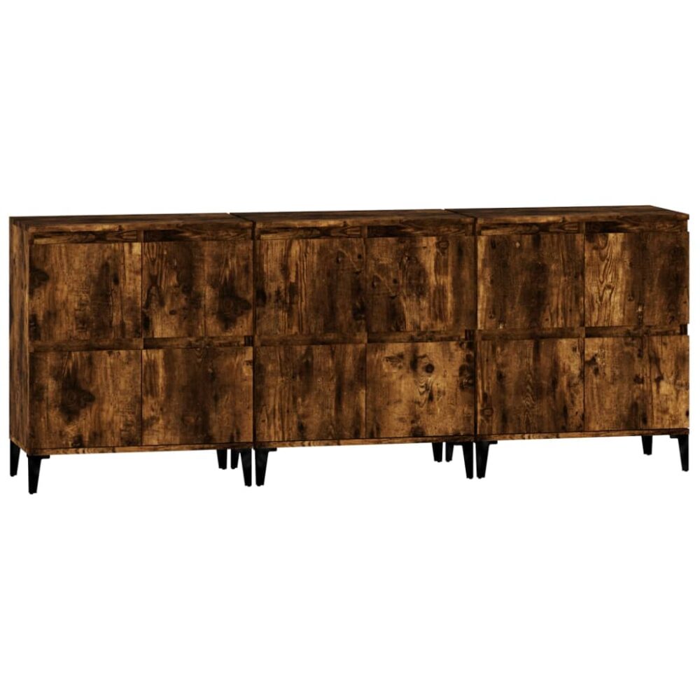 Aparadores 3 pcs 60x35x70 cm derivados madeira carvalho fumado - PORTES GRÁTIS