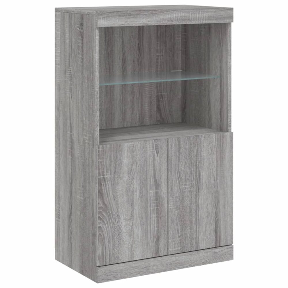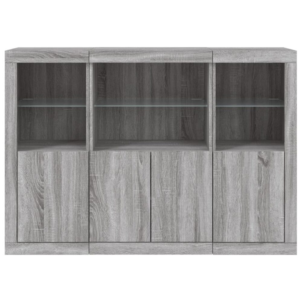 Aparadores c/ LEDs 3 pcs derivados de madeira cinzento sonoma - PORTES GRÁTIS