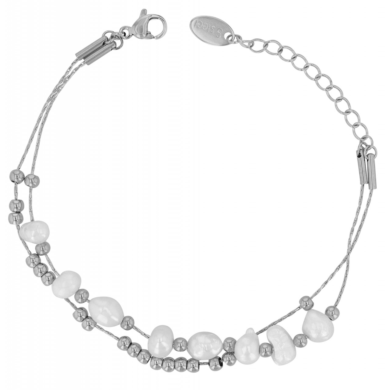 A pulseira é composta por duas correntes que têm 17 cm de comprimento, uma corrente é decorada com 8 pérolas de água doce e a outra corrente com pequenas contas de aço inoxidável. A pulseira de filigrana pode ser aberta e fechada com um fecho de lagosta, também em aço inoxidável. Numa das extremidades da peça de joalharia, está igualmente fixada uma corrente de extensão de 5 cm. Deste modo, é possível variar o comprimento até 5 cm e ajustar a corrente a qualquer pulso.