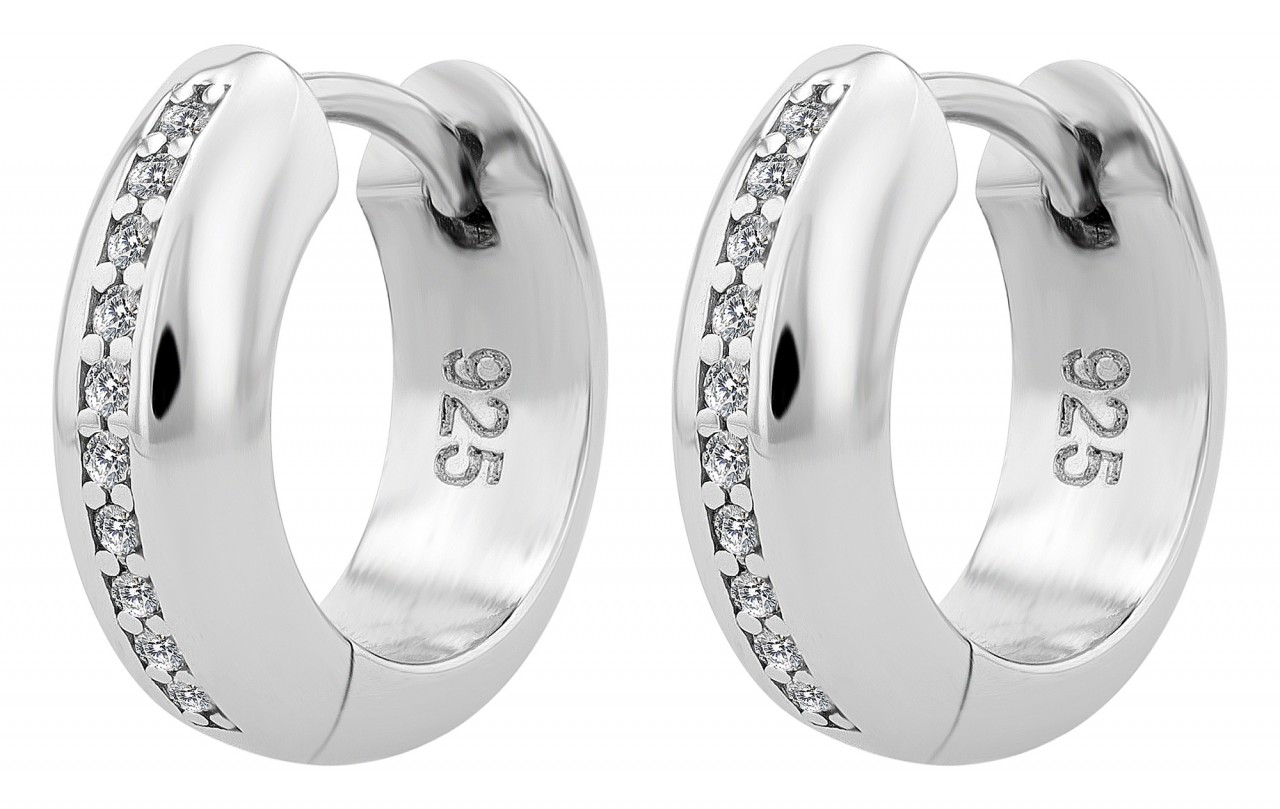 Os nossos brincos de argola dobráveis em prata de primeira lei 925 polida e banhada a ródio oferecem uma elegância deslumbrante e um brilho irresistível. Os brincos de argola são fabricados em prata de lei 925, conhecida pela sua pureza e qualidade excepcionais. A utilização deste material de alta qualidade confere às jóias a resistência e a durabilidade necessárias. A superfície destes brincos de argola é polida e cria um brilho irresistível que capta a luz em todas as suas facetas. No centro de cada brinco de argola, uma linha de zircónias radiantes forma um ponto focal visual. Com um diâmetro de 12 mm, uma largura generosa de 6 mm e uma espessura de 3 mm, estes brincos de argola são uma afirmação de tamanho e presença. Os seus lados arredondados conferem-lhes uma silhueta suave e feminina, enquanto a colocação de zircónias lhes dá um toque de glamour.