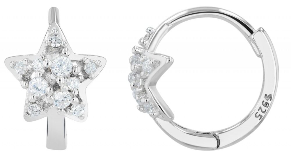 O brinco de argola “Maxie” é uma peça de joalharia elegante feita de prata 925 de alta qualidade. A caraterística especial deste brinco de argola são as estrelas de cinco pontas com um diâmetro de 9 mm fixadas na parte da frente, que são engastadas com um total de 16 pedras de zircónio brilhantes e brilham elegantemente sob qualquer luz. As argolas têm um tamanho compacto, com uma altura de 13 mm, uma largura de 9 mm e uma espessura de 2 mm; o diâmetro interior é de 10 mm.