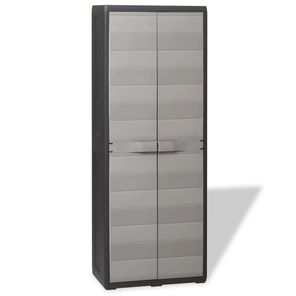 Armário arrumação para jardim c/ 3 prateleiras preto e cinzento - PORTES GRÁTIS