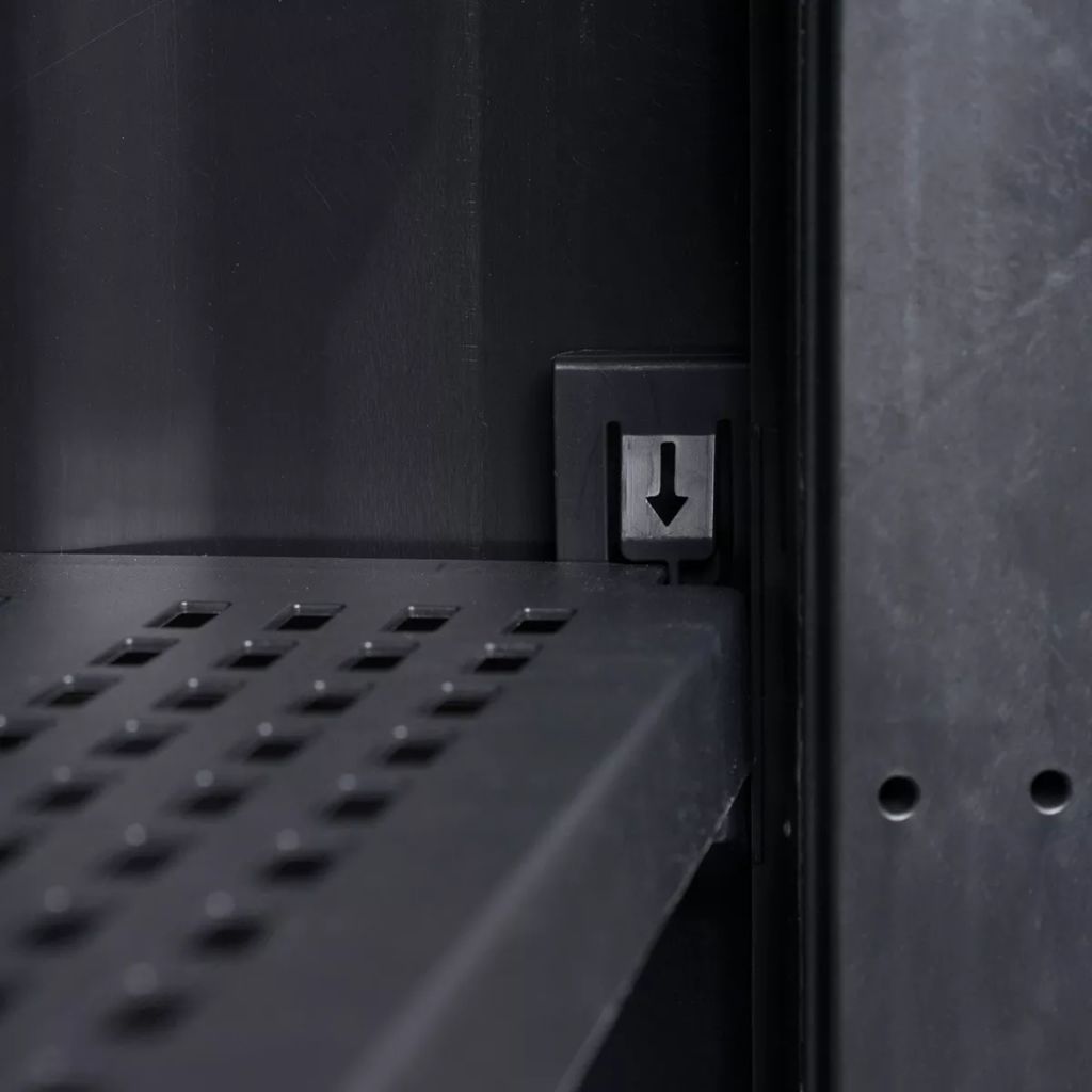 Este armário certificado pela TÜV-GS é feito de polipropileno resistente e durável (PP). O armário de arrumação espaçoso possui prateleiras ventiladas que podem ser ajustadas para acomodar artigos de diferentes tamanhos. O armário de jardim pode ser trancado com um cadeado para maior segurança (o cadeado não está incluído).