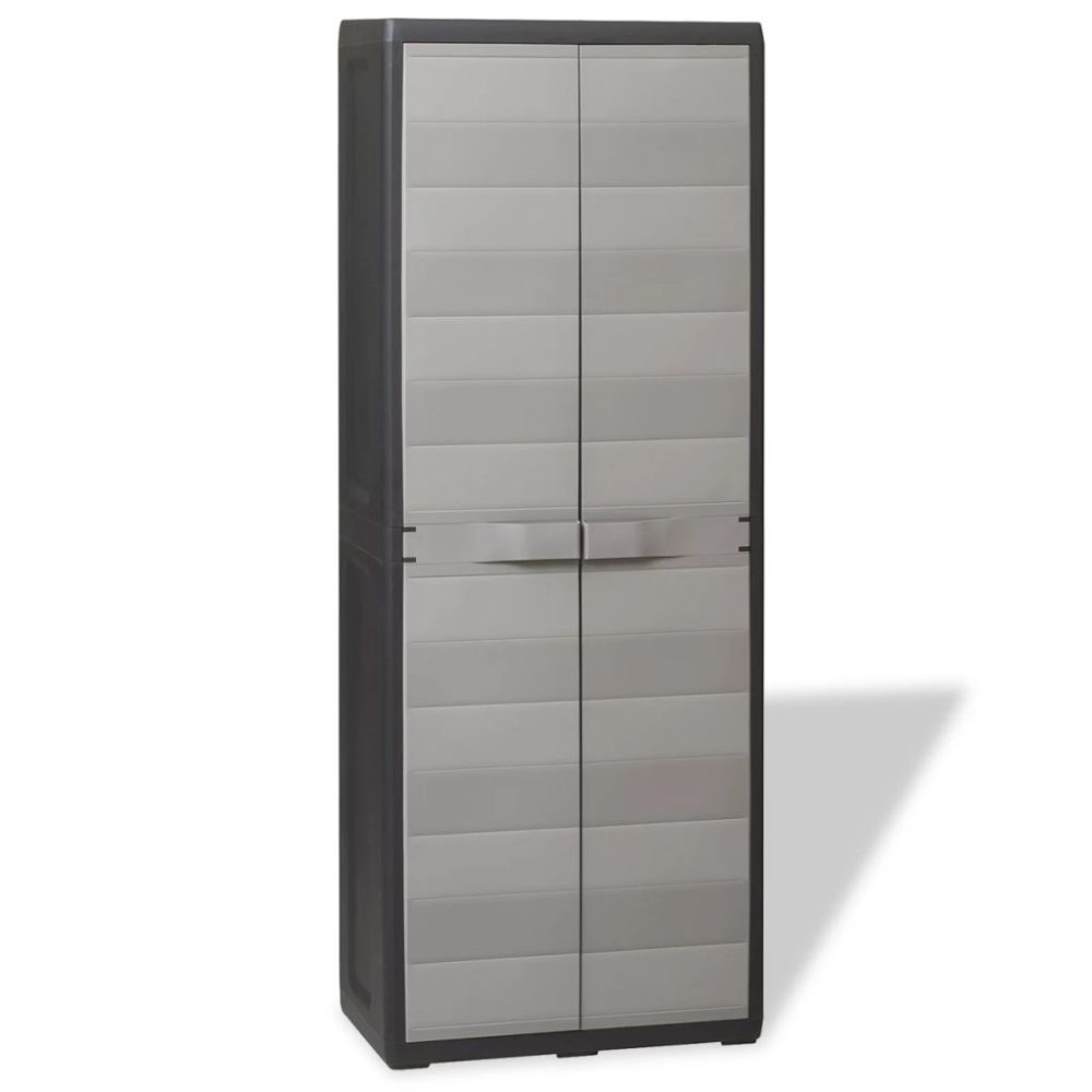 Este armário certificado pela TÜV-GS é feito de polipropileno resistente e durável (PP). O armário de arrumação espaçoso possui prateleiras ventiladas que podem ser ajustadas para acomodar artigos de diferentes tamanhos. O armário de jardim pode ser trancado com um cadeado para maior segurança (o cadeado não está incluído).