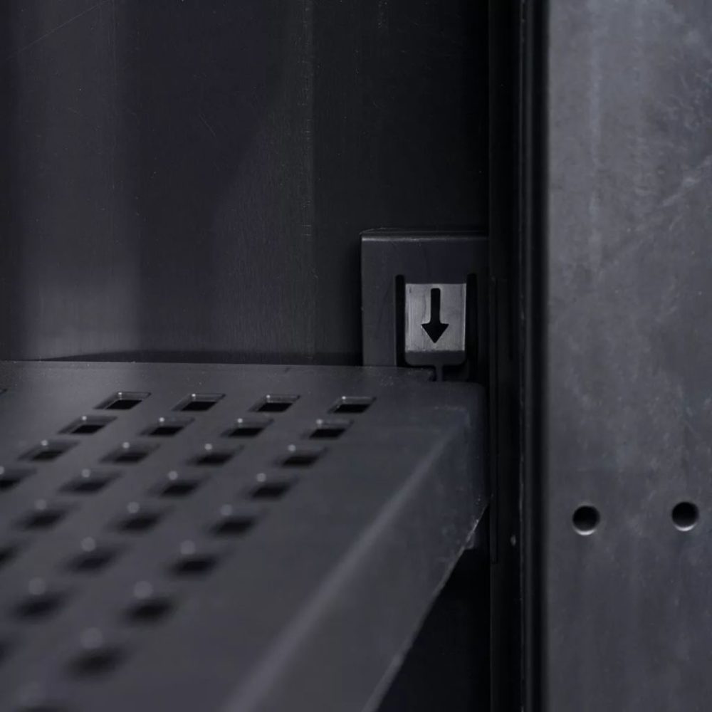 • Cada prateleira possui uma trava de segurança (para imobilizar a prateleira)