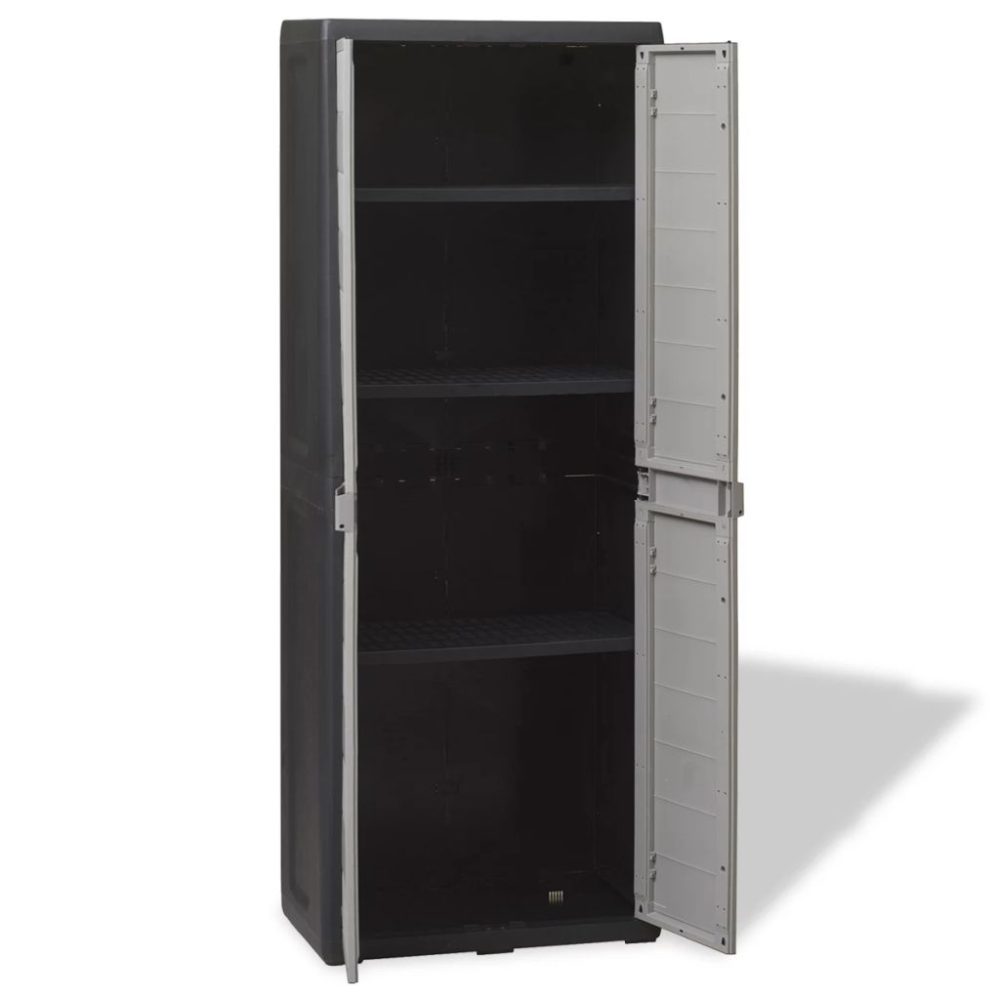 Armário arrumação para jardim c/ 3 prateleiras preto e cinzento - PORTES GRÁTIS