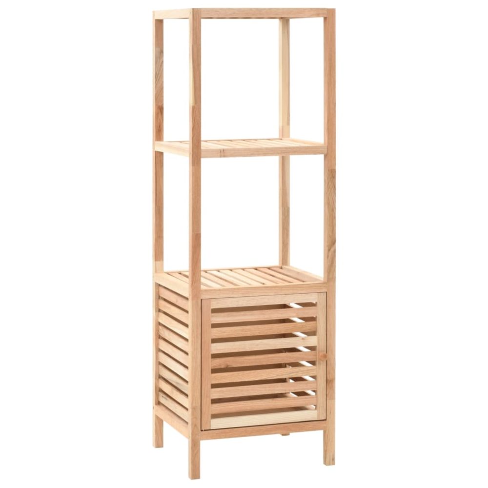 Atribua um toque de estilo natural à sua casa de banho ou outras divisões, com o nosso armário de arrumação em madeira! O móvel de arrumação, feito em madeira de nogueira maciça e contraplacado, é estável, durável e bonito. O móvel possui três prateleiras e um compartimento com uma porta em ripas, para poder manter os seus artigos organizados e ventilados.