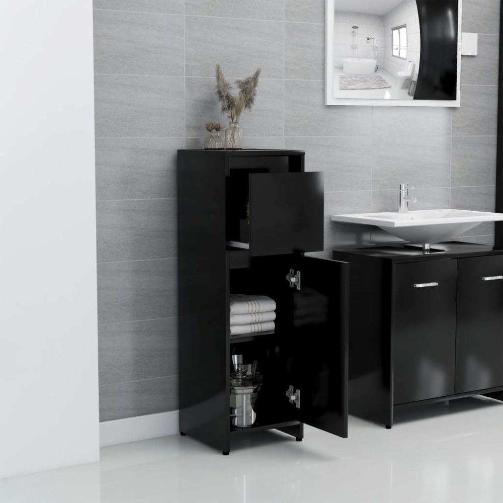 Armário de casa de banho 30x30x95 cm contraplacado preto - PORTES GRÁTIS