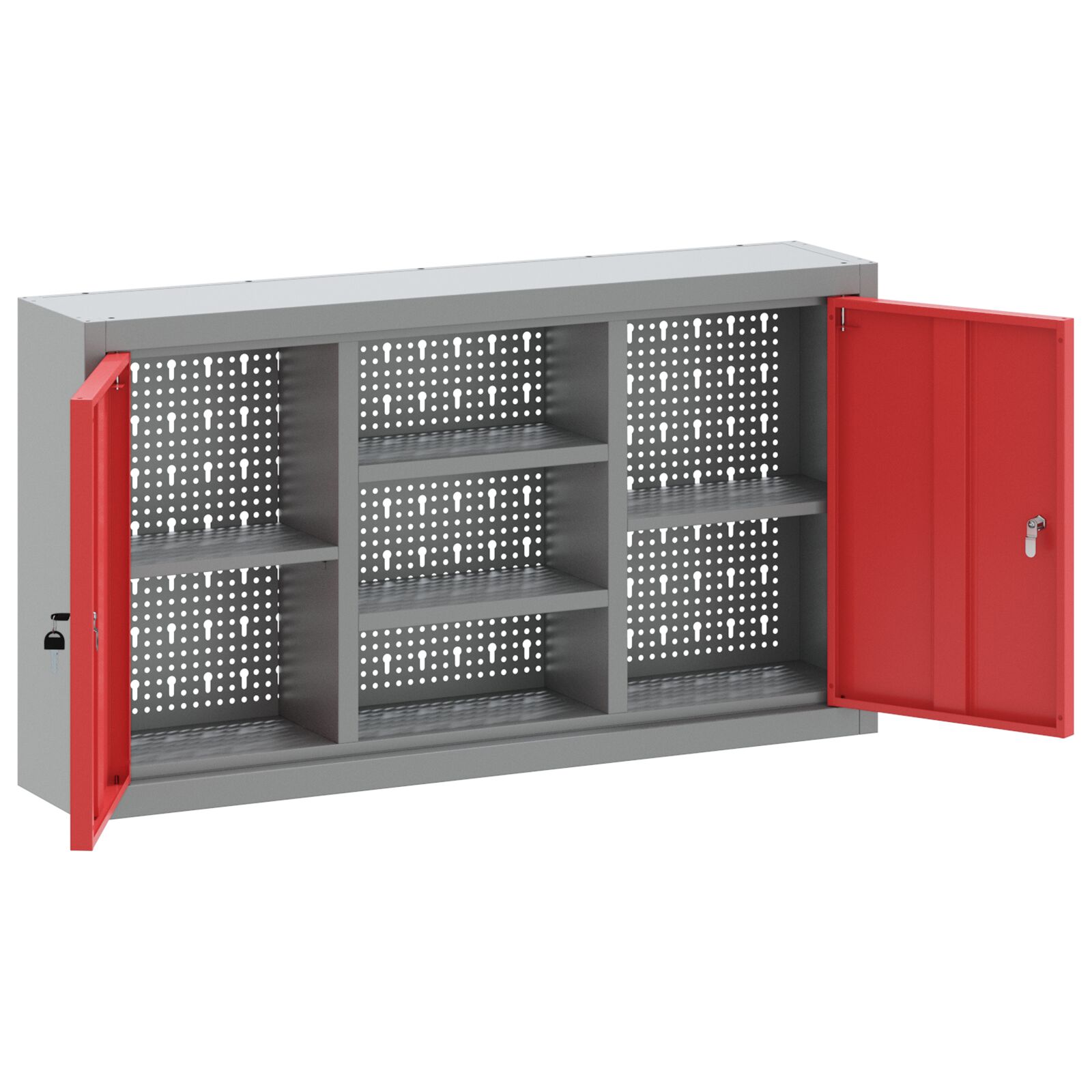 Este armrio modular de parede uma excelente adio a qualquer espao de trabalho. Feito de ao laminado a frio, inclui uma placa perfurada para um armazenamento personalizvel, tornando-o ideal para oficinas, salas de artesanato ou qualquer espao interior que precise de organizao. Com um design moderno e estiloso, alia praticidade a um visual arrojado. Com dimenses de 100 x 20 x 55 cm, compacto mas ainda assim espaoso o suficiente para guardar ferramentas e materiais. Perfeito para adultos, transforma reas desorganizadas em lugares prticos, ajudando na produtividade. As cores vibrantes em cinzento e vermelho facilitam encontrar o que se precisa. Este armrio um excelente equilbrio entre estilo e utilidade.