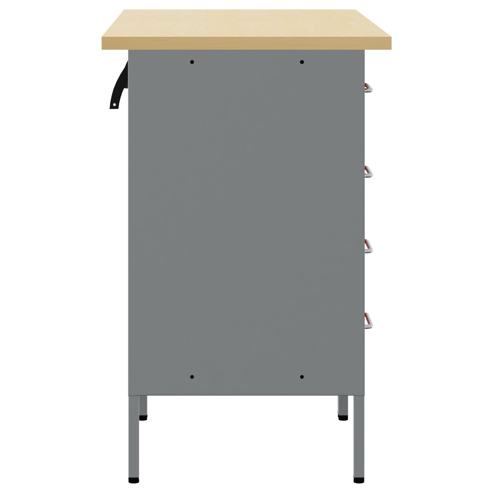 Este armrio de trabalho industrial uma opo prtica para a oficina ou garagem. Feito de ao robusto com um acabamento fosco e detalhes em madeira engenheirada, tem um visual estiloso e funcional. As quatro gavetas deslizam suavemente com rolamentos de esferas, facilitando o acesso a tudo. Os ps ajustveis garantem que se mantenha estvel em pisos irregulares e suporta at 150 kg, sendo ideal para quem precisa de um lugar fivel para guardar ferramentas e equipamentos. Com 100 cm de largura, 55 cm de profundidade e 85 cm de altura, encaixa-se bem em espaos pequenos, mas oferece muito espao de armazenamento.
