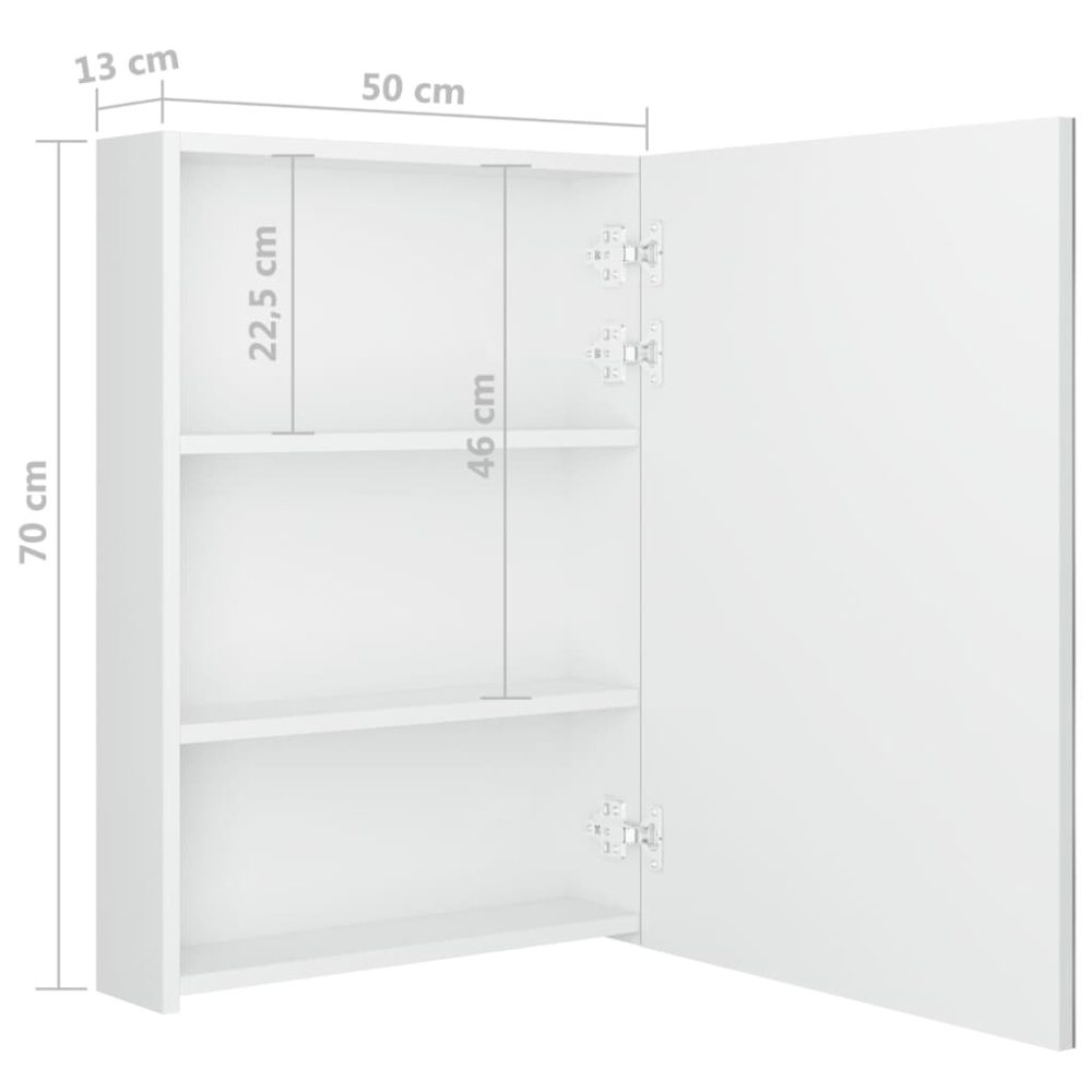 Este armário de parede é fabricado em MDF com acabamento em melamina, permitindo assim uma utilização a longo prazo. Com a faixa de luzes LED de baixo consumo energético, oferece-lhe uma iluminação real para aplicação da maquilhagem, limpeza e cuidados da pele e iluminará a sua divisão, o seu rosto e o seu sorriso. O interior inclui 3 prateleiras, que fornecem um amplo espaço de arrumação para todos os seus artigos de toalete e acessórios de beleza. Poderá facilmente ligar/desligar a luz através do botão existente na parte inferior. Elegante e funcional, este armário tornará sem dúvida o design da sua divisão originalmente excecional!