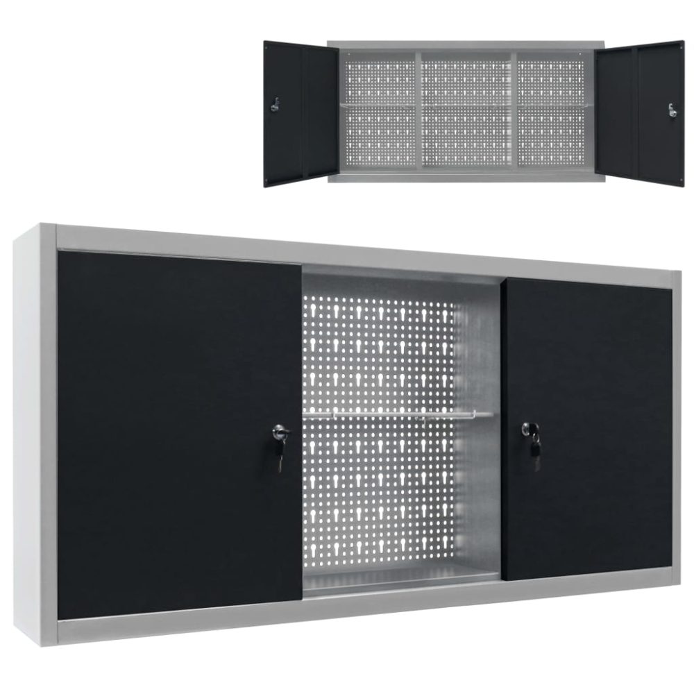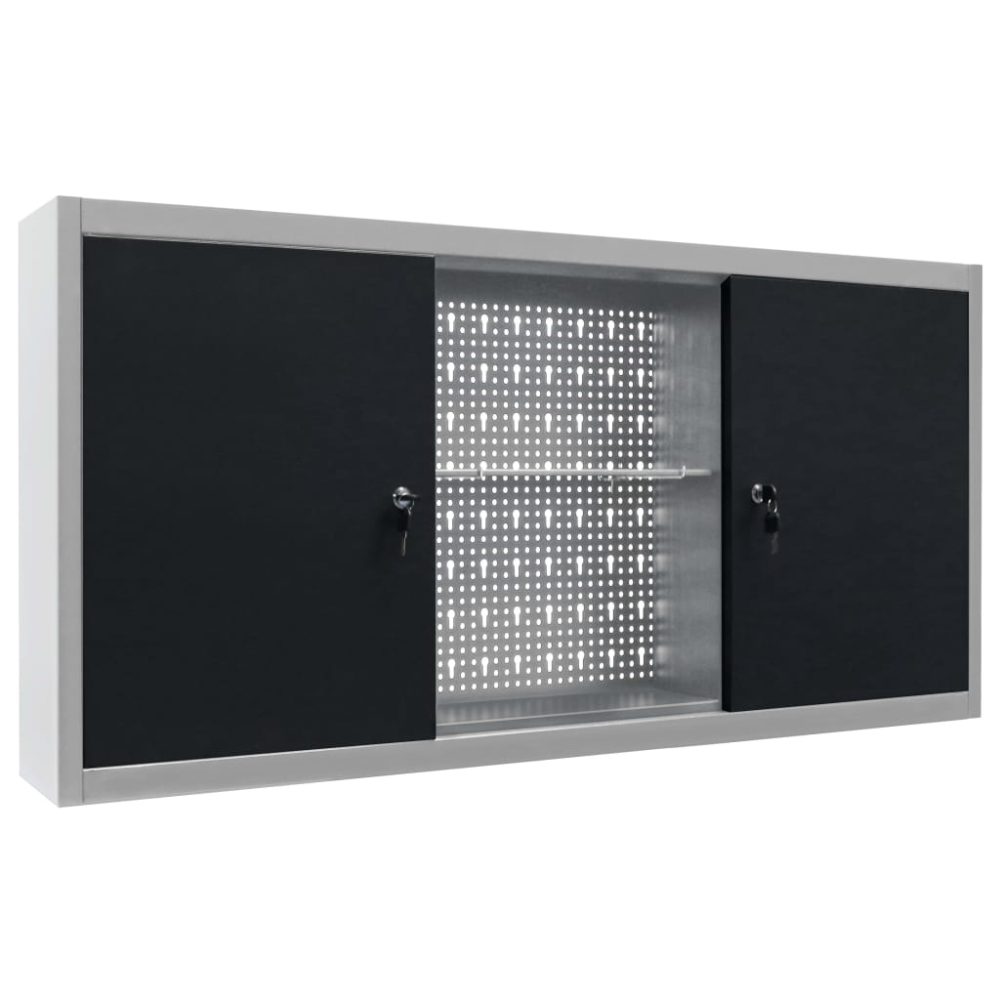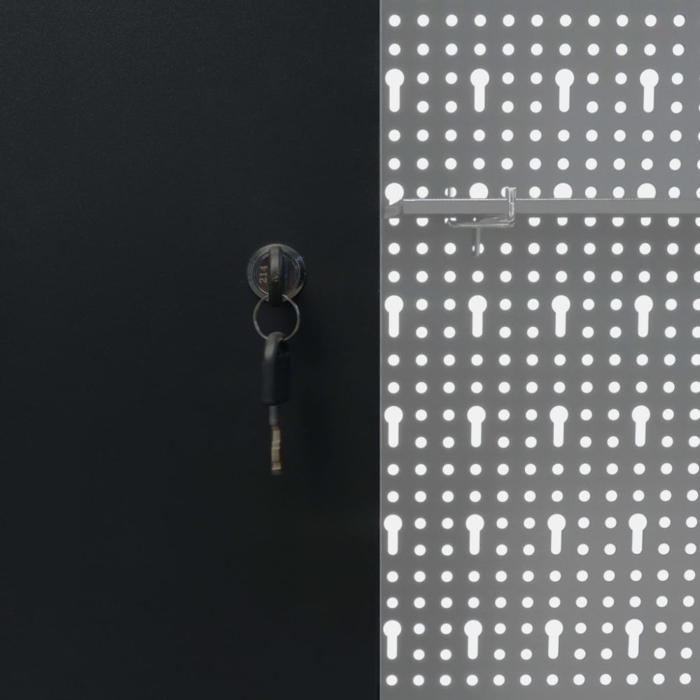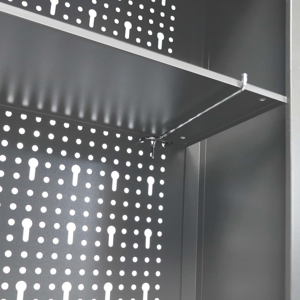 Esta unidade de armazenamento de ferramentas possui três prateleiras ajustáveis em altura e uma placa perfurada com furos Euro que podem ser utilizados para pendurar vários tipos de ferramentas tais como chaves inglesas, alicates, martelos etc. Equipado com duas portas bloqueáveis (2 chaves incluídas para cada porta), o armário de ferramentas oferece uma segurança extra. É feito de metal com um revestimento antirriscos forte, tornando-o durável e fácil de limpar. O produto precisa de ser montado.