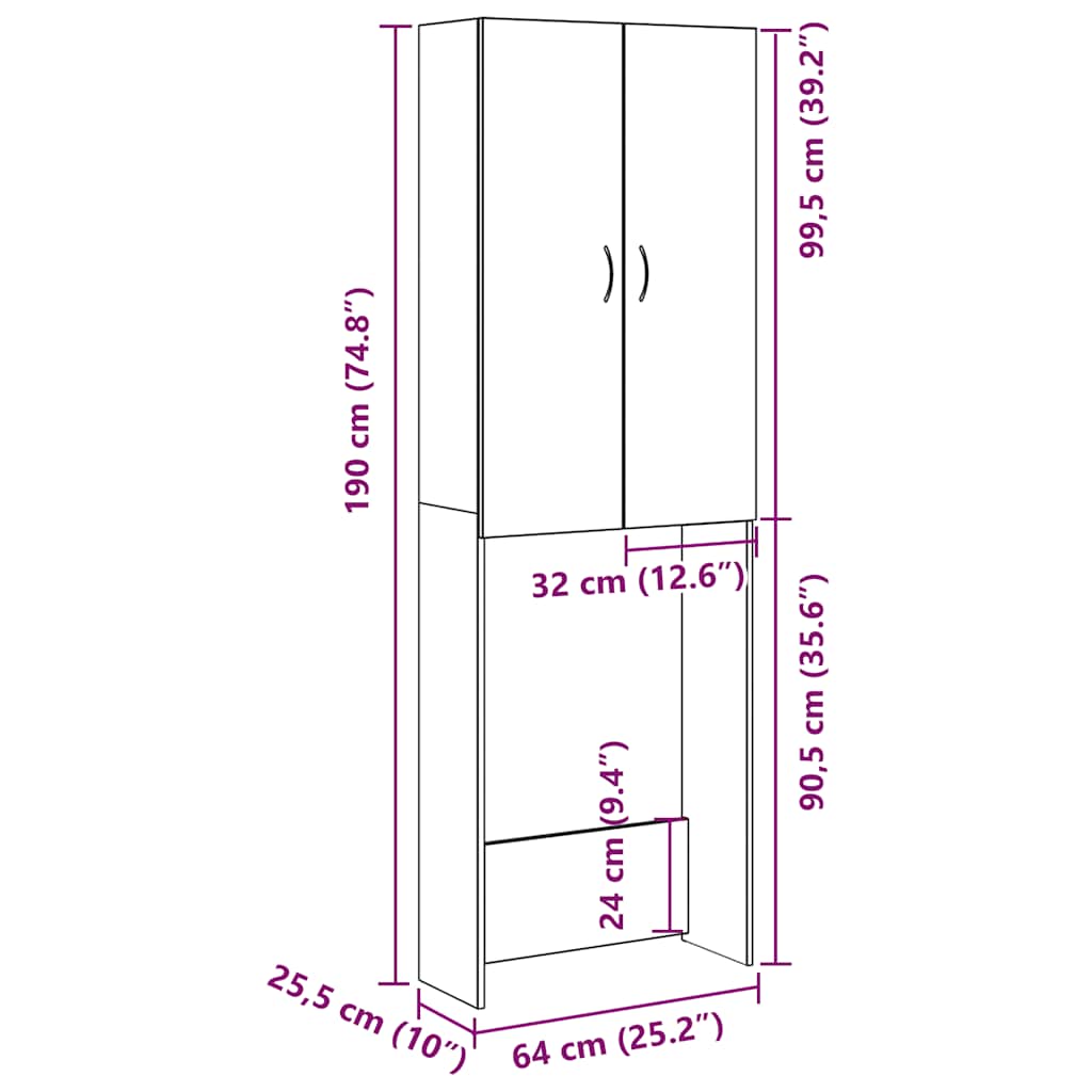 Armário máquina lavar roupa 64x25,5x190 cm carvalho artisiano - PORTES GRÁTIS