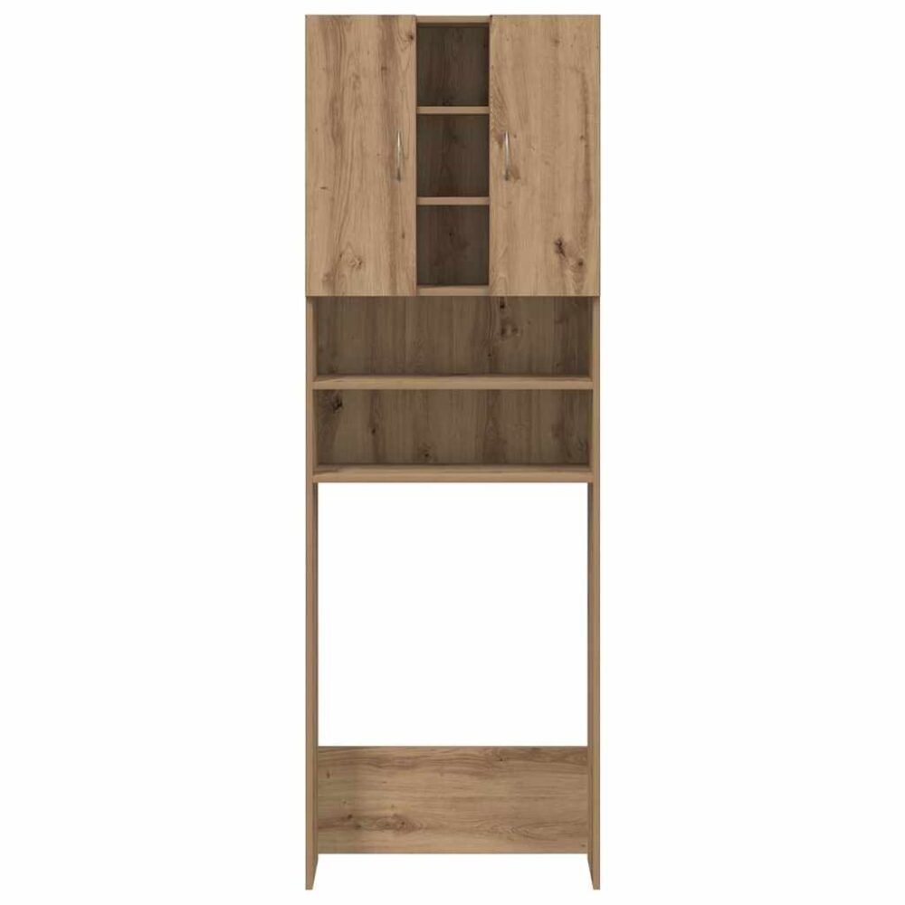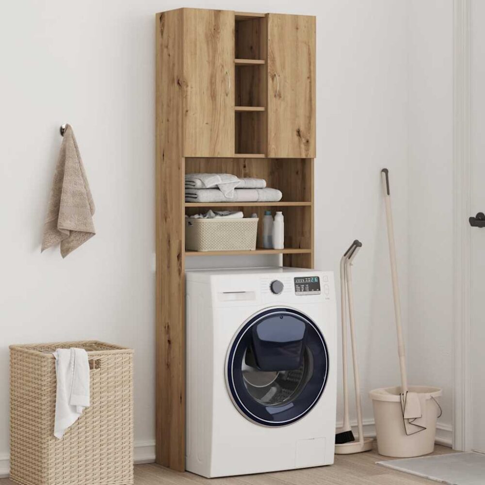 Com este armário para máquina de lavar roupa, pode criar e otimizar espaço de arrumação adicional na casa de banho ou lavandaria.Material de qualidade: os móveis feito com derivados de madeira possuem uma qualidade excecional e oferecem uma superfície suave bem como força, estabilidade e resistência à humidade.Espaço de arrumação suficiente: os 4 compartimentos oferecem um amplo espaço de arrumação para manter os seus utensílios de lavandaria, material de limpeza, artigos de higiene pessoal e outros produtos bem organizados e ao seu alcance.Função de poupança de espaço: esta unidade de prateleiras para máquina de lavar consegue utilizar eficazmente a área de arrumação desperdiçada por cima da máquina de lavar ou da sanita.Limpeza fácil: este armário para máquina de lavar roupa…