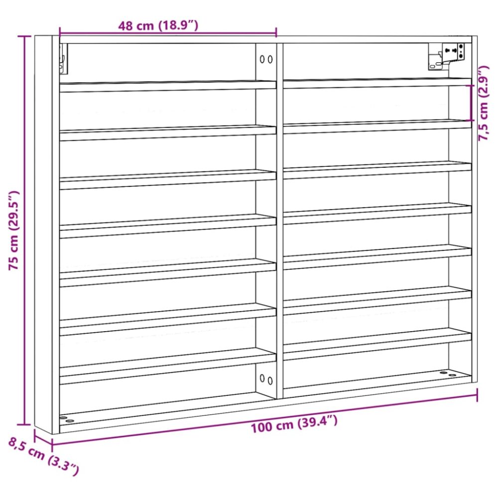 Armário vitrine 100x8,5x75 cm derivados madeira carvalho sonoma - PORTES GRÁTIS