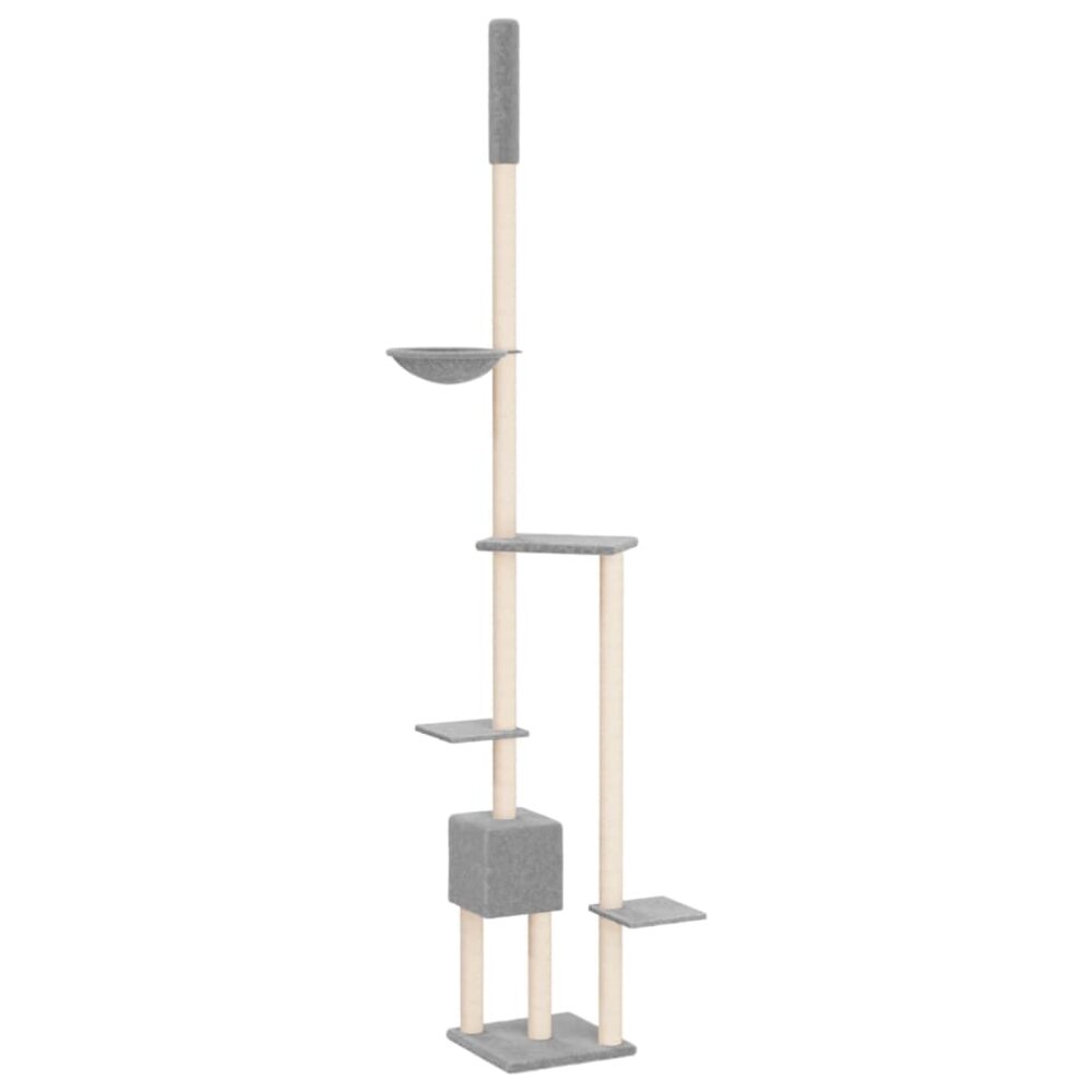 Mantenha os seus adoráveis gatos infinitamente entretidos com esta árvore para gatos tudo-em-um! Torre para gatos tudo-em-um: a torre arranhadora para gatos com vários níveis foi concebida com 1 casa, 1 rede e plataformas, proporcionando um lugar perfeito para os seus gatos treparem, se empoleirarem, arranharem, se esconderem e, ainda, para relaxarem.Material de pelúcia suave: a pelúcia extremamente densa e macia é bem ventilada, resistente aos arranhões, super confortável e quente.Postes de sisal naturais: os resistentes e fortes postes em sisal natural da árvore arranhadora para gatos são perfeitos para os seus adorados gatos satisfazerem o seu instinto de arranhar e evitar que o façam nos seus móveis.Design prático: com o poste ajustável, o centro de atividades para gatos pode ser fixado ao teto e a sua altura pode ser ajustada de 258,5 a 284,5 cm. Nota:Cada produto é fornecido com um manual de instruções na caixa para facilitar a montagem.