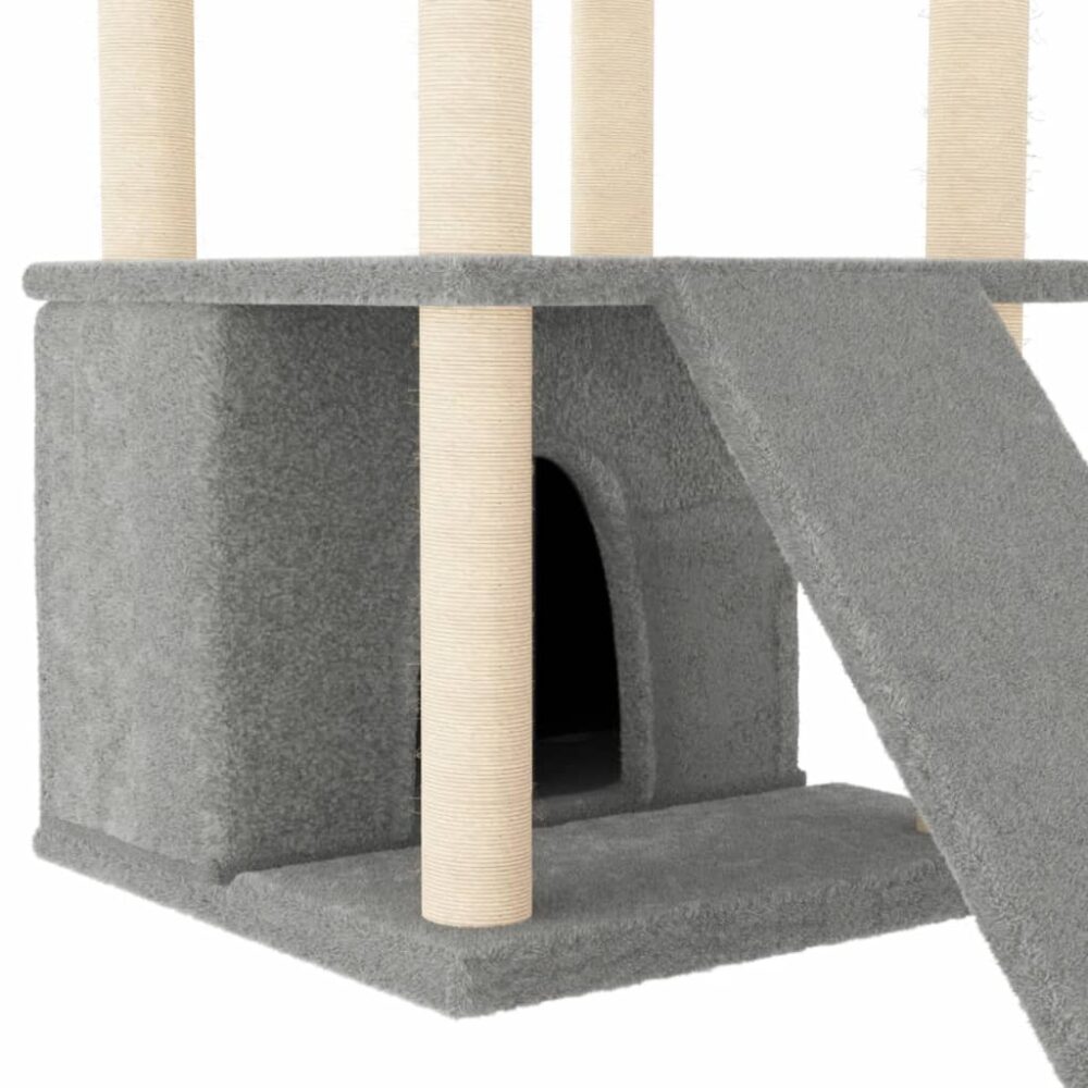 Mantenha os seus adoráveis gatos infinitamente entretidos com esta árvore para gatos tudo-em-um! Torre para gatos tudo-em-um: a torre arranhadora para gatos com vários níveis foi concebida com dois cestos, uma casa, uma escada e plataformas, proporcionando um lugar perfeito para os seus gatos treparem, se empoleirarem, arranharem, se esconderem e, ainda, para relaxarem.Material de pelúcia suave: a pelúcia extremamente densa e macia é bem ventilada, resistente aos arranhões, super confortável e quente.Postes de sisal naturais: os resistentes e fortes postes em sisal natural da árvore arranhadora para gatos são perfeitos para os seus adorados gatos satisfazerem o seu instinto de arranhar e evitar que o façam nos seus móveis.