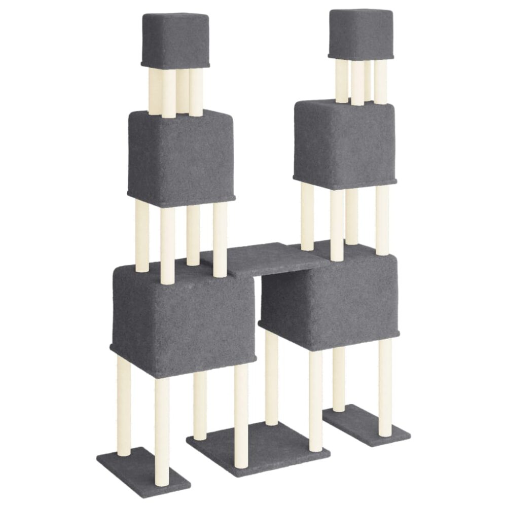 Mantenha os seus adoráveis gatos infinitamente entretidos com esta árvore para gatos tudo-em-um! Torre para gatos tudo-em-um: a torre arranhadora para gatos, com vários níveis, foi concebida com uma plataforma e 6 casas, proporcionando um lugar perfeito para os seus gatos treparem, se empoleirarem, arranharem, se esconderem e, ainda, para relaxarem.Material de pelúcia suave: a pelúcia extremamente densa e macia é bem ventilada, resistente aos arranhões, super confortável e quente.Postes de sisal naturais: os resistentes e fortes postes em sisal natural da árvore arranhadora para gatos são perfeitos para os seus adorados gatos satisfazerem o seu instinto de arranhar e evitar que o façam nos seus móveis.