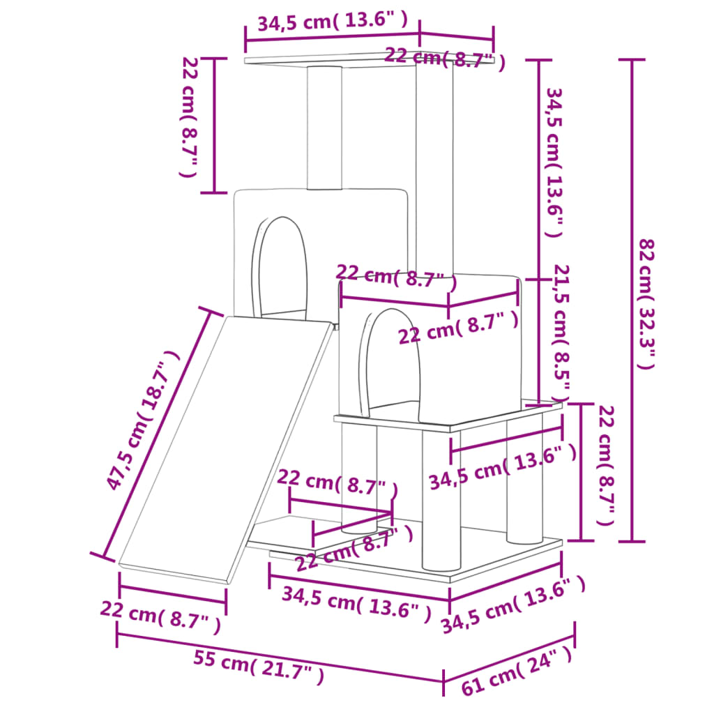 Árvore p/ gatos c/ postes arranhadores sisal 82 cm cinza-escuro - PORTES GRÁTIS