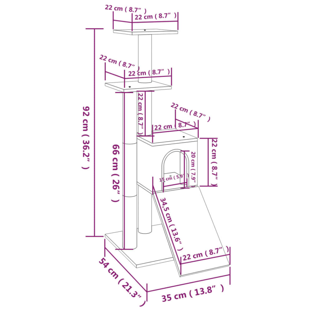 Este arranhador é o refúgio perfeito para os seus gatos arranharem, escalarem, empoleirarem-se, esconderem-se e descansarem. Oferece aos seus gatos a possibilidade de se esticarem e exercitarem, especialmente nos meses frios de inverno quando são forçados a ficar dentro de casa. Os seus amigos peludos podem afiar as suas garras nos postes arranhadores envoltos em corda de sisal, proporcionando um escape saudável para os seus instintos de arranhar. Também vão gostar de se perseguirem uns aos outros enquanto saltam para cima e para baixo neste centro de diversões. Quando se tiverem divertido o suficiente, os seus amigos vão adorar descansar nas plataformas superiores, de onde têm uma vista melhor. Também se podem esconder na casa acolhedora para dormirem um pouco…