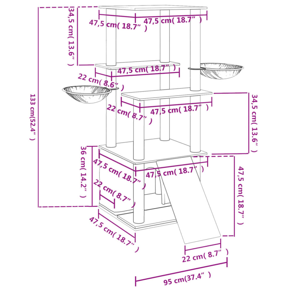 Árvore para gatos c/ postes arranhadores sisal 133 cm cor creme - PORTES GRÁTIS