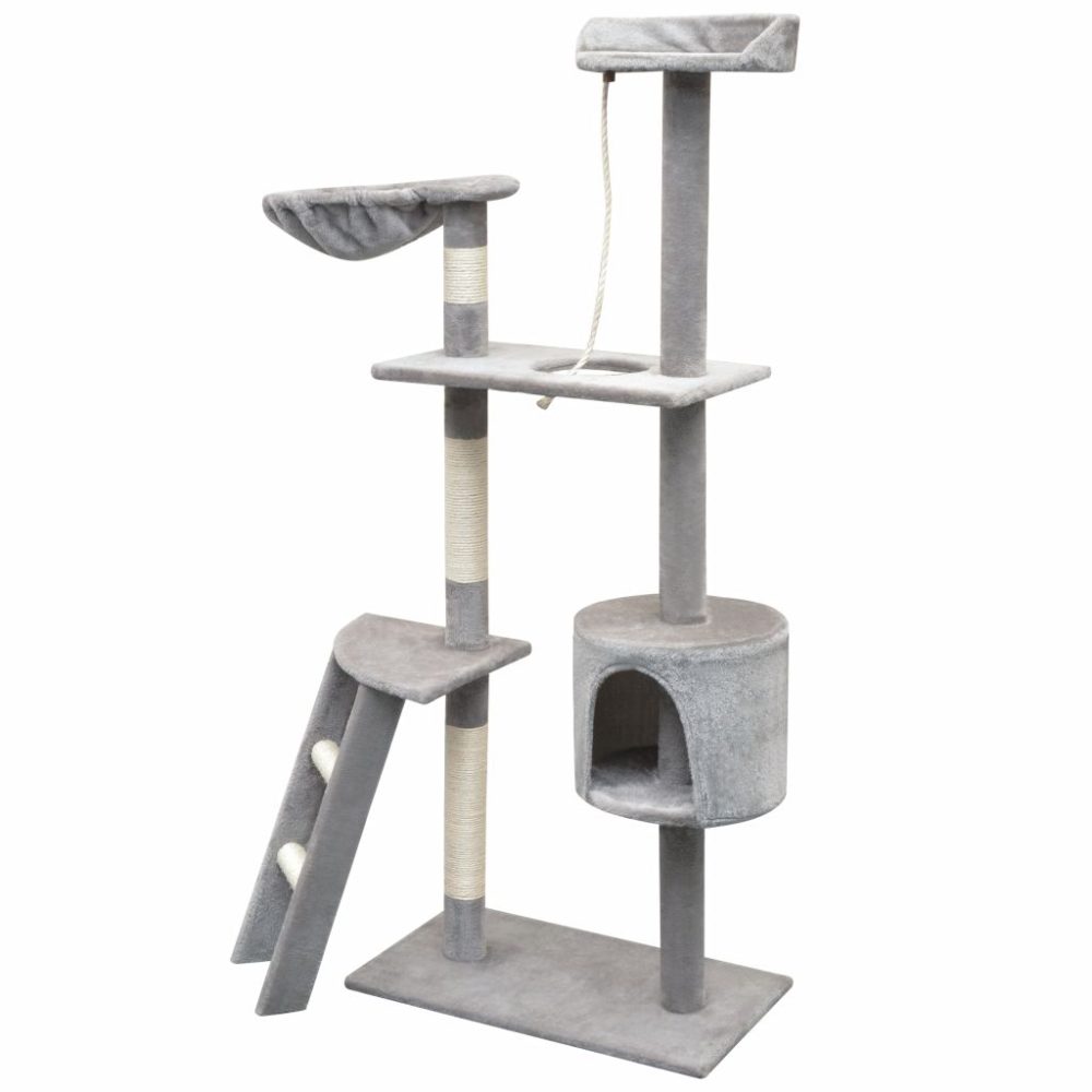 Os seus amigos felinos podem afiar as suas garras nos postes arranhadores envoltos em corda de sisal, proporcionando um escape saudável para os seus instintos de arranhar. Também vão gostar de se perseguirem uns aos outros enquanto pulam para cima e para baixo neste centro de diversões. Debaixo da plataforma superior existe uma corda de brincar para despertar a curiosidade dos seus gatos. Quando se tiverem divertido o suficiente, os seus amigos vão adorar descansar nas plataformas superiores, onde têm uma visão melhor. Também se podem esconder nas casas acolhedoras para fazerem uma soneca ou relaxarem na rede confortável.