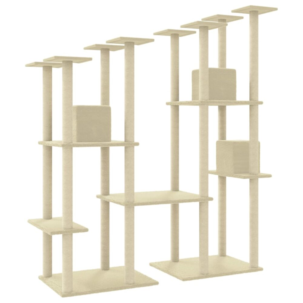 Este arranhador é o refúgio perfeito para os seus gatos arranharem, escalarem, empoleirarem-se, esconderem-se e descansarem. Oferece aos seus gatos a possibilidade de se esticarem e exercitarem, especialmente nos meses frios de inverno quando são forçados a ficar dentro de casa. Postes de sisal: os resistentes e fortes postes em sisal natural são perfeitos para os seus adorados gatos satisfazerem o seu instinto de arranhar e assim evitar que o façam na sua mobília.Várias utilizações: vão adorar perseguirem-se uns aos outros enquanto saltam para cima e para baixo neste divertido centro de atividades. Quando tiverem brincado o suficiente, os seus amiguinhos vão adorar descansar nas plataformas superiores de onde têm uma vista melhor.Casa confortável: a casa permite que o seu gato descanse e durma sem qualquer perturbação.