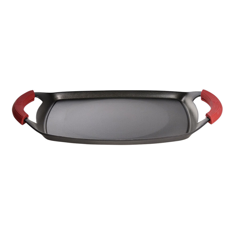 Grelha em alumínio fundido, para indução, interior com revestimento ilag premium, cabos de baquelite soft touch e pegadores vermelhos 36 x 23 cm