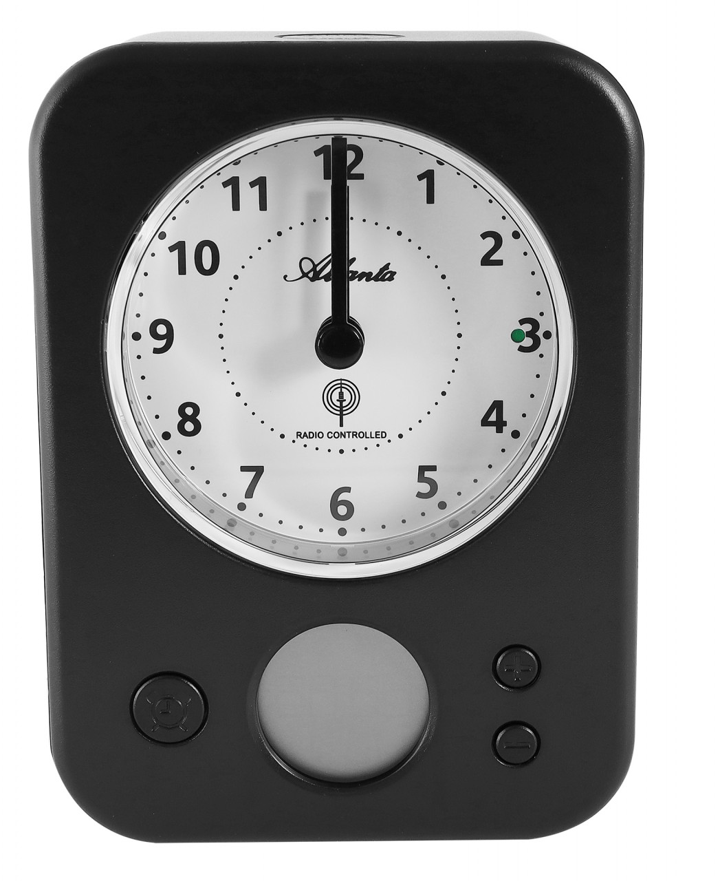 O rádio despertador analógico de 2 ponteiros de Atlanta possui um movimento de quartzo de alta qualidade. A caixa preta e o vidro transparente do relógio são feitos de plástico. Depois de inserir a bateria, o despertador recebe automaticamente o sinal de rádio após esperar alguns minutos e então acerta a hora correta. O despertador possui uma função de repetição, que faz com que o sinal acústico do alarme fique cada vez mais alto. Depois de pressionar o botão de função soneca, ele soará após mais 4 minutos. O sinal de alarme sonoro repete-se continuamente até que a alavanca OFF seja movida para baixo. O despertador também possui mostrador iluminado. Isso facilita a leitura da hora, mesmo no escuro. Você recebe a temperatura interna e a configuração exata do alarme através do display LCD.