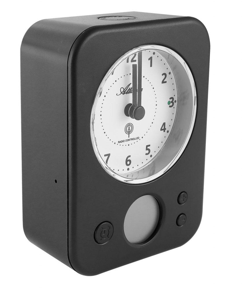 O rádio despertador analógico de 2 ponteiros de Atlanta possui um movimento de quartzo de alta qualidade. A caixa preta e o vidro transparente do relógio são feitos de plástico. Depois de inserir a bateria, o despertador recebe automaticamente o sinal de rádio após esperar alguns minutos e então acerta a hora correta. O despertador possui uma função de repetição, que faz com que o sinal acústico do alarme fique cada vez mais alto. Depois de pressionar o botão de função soneca, ele soará após mais 4 minutos. O sinal de alarme sonoro repete-se continuamente até que a alavanca OFF seja movida para baixo. O despertador também possui mostrador iluminado. Isso facilita a leitura da hora,…