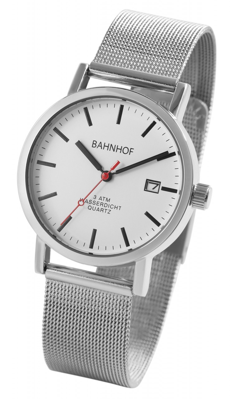 Relógio da marca Bahnhof unissexo com bracelete em aço inoxidável.